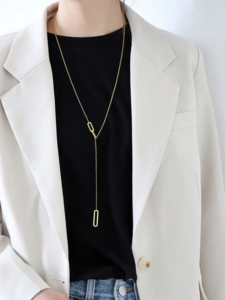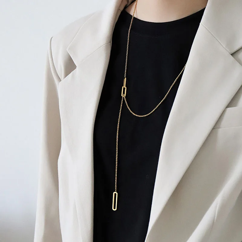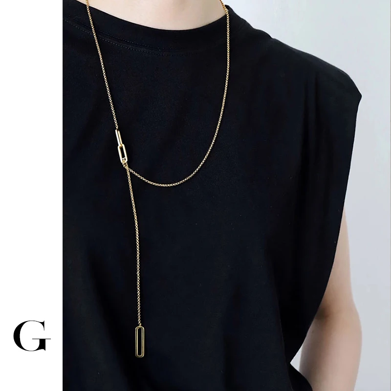 GHIDBK Ins простое Эффектное длинное ожерелье уникального дизайна из нержавеющей стали, женская мода, уличный стиль, ошейники, ювелирные изделия, оптовая продажа