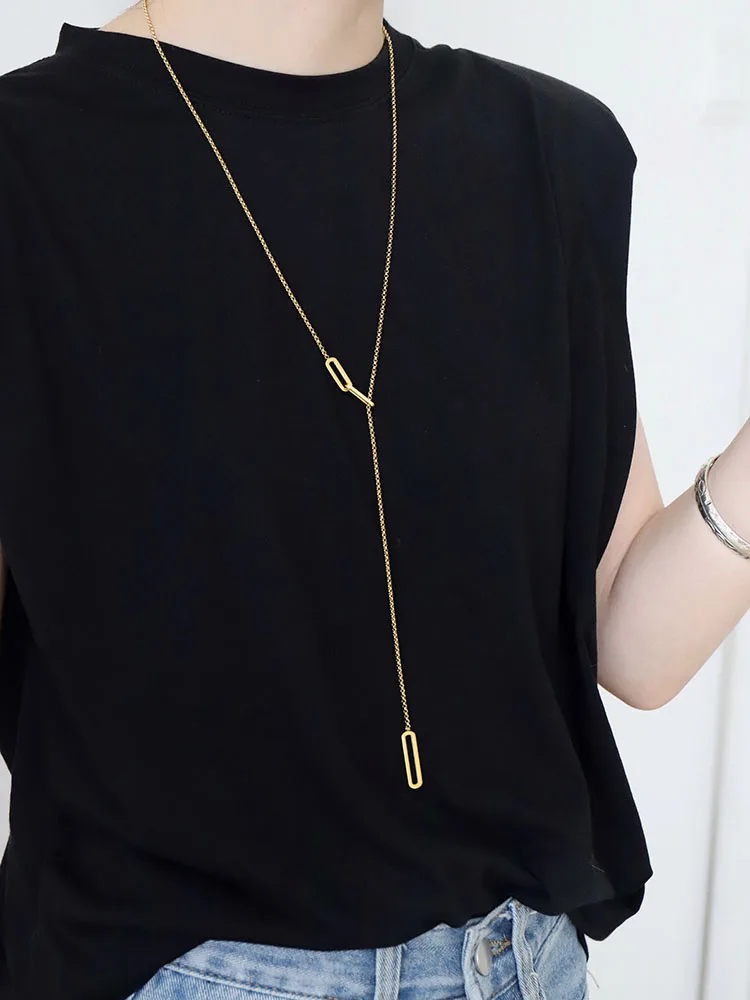 GHIDBK Ins Простые Длинные ожерелья уникального дизайна из нержавеющей стали женские модные уличные воротники ювелирные изделия оптомМатериал: нержавеющая стальОсобенности: модные ювелирные изделия, женские ожерелья-чокер, уличные ювелирные изделия, массивные ювелирные изделия оптом
