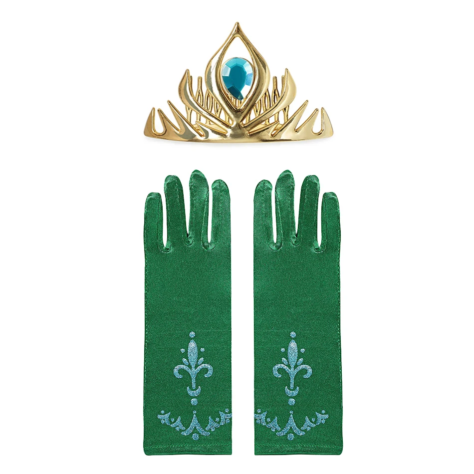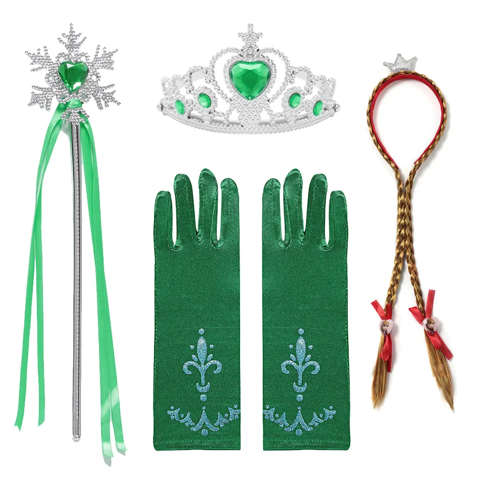 Детский костюм принцессы, бальное платье Анны с коротким рукавом, с цветочным принтом, с короной, аксессуары для парика