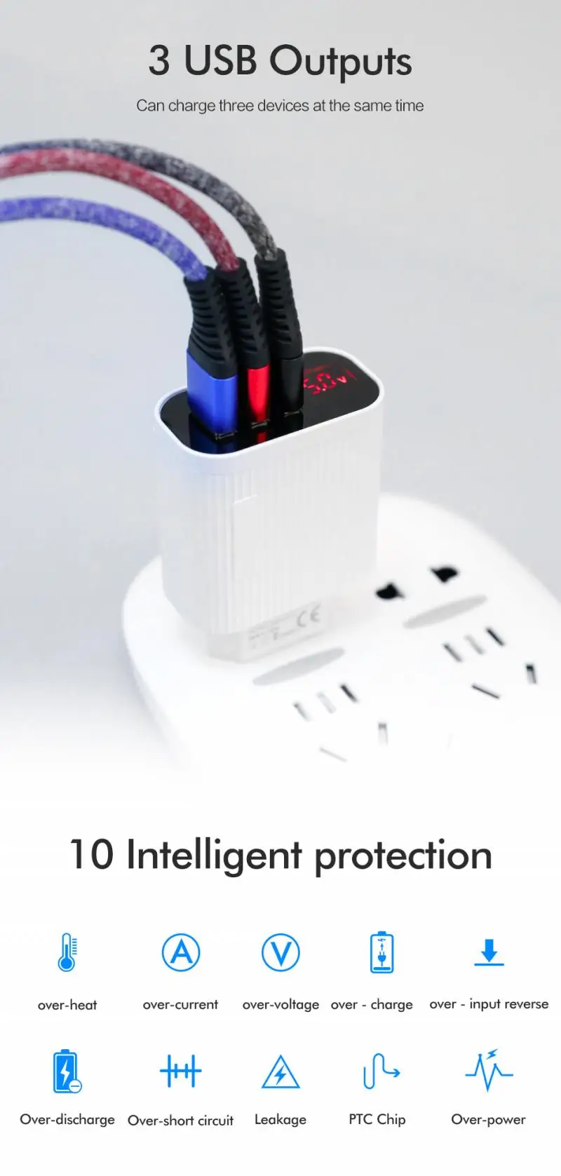 Модель продукта: зарядное устройство с 3 usb-портами для цифровой дисплей полоса зарядная головка