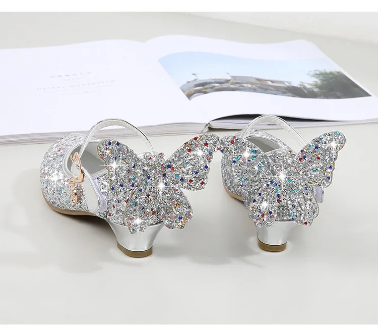 Новинка; Модная обувь с украшением в виде кристаллов обувь для девочек с изображением Эльзы и принцессы Авроры, а так же Костюмы С Рисунком бабочки из блесток детские сандалии Cinderelia платье Рапунцель для Осенняя обувь на шнуровке; Вечерние