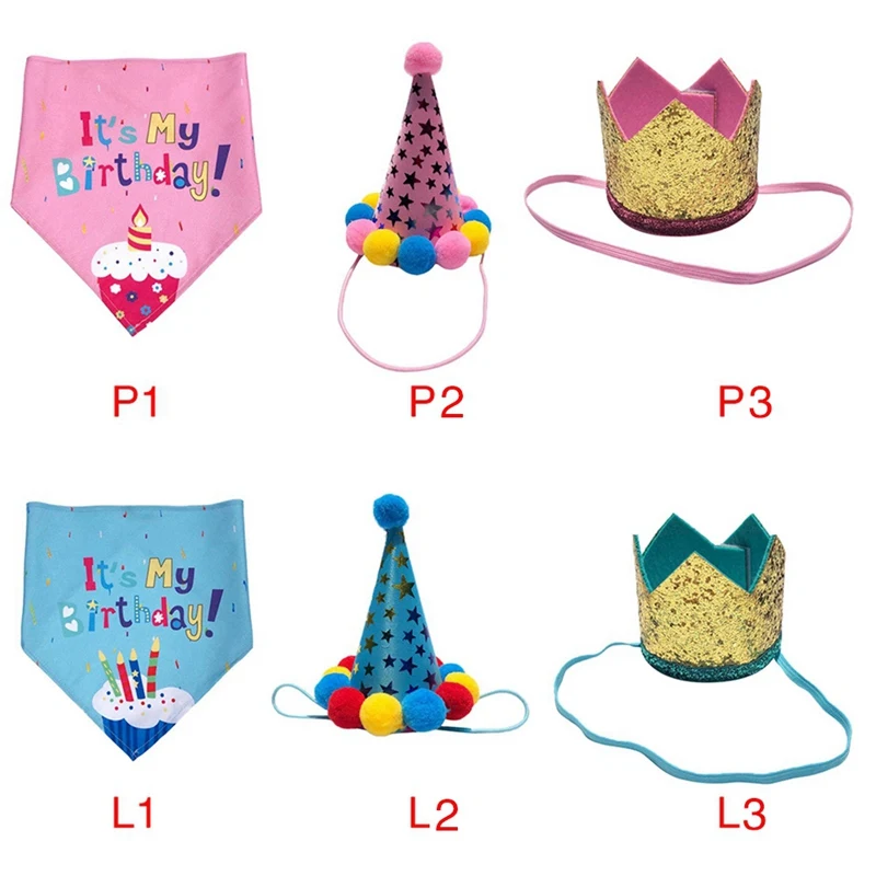 Милые домашние животные Собаки шапки ко дню рождениянагрудники пайеткам повязка на голову с шапочкой и повязкой кошки собаки, наряд на первый день рождения для рождественской вечеринки аксессуары для домашних животных