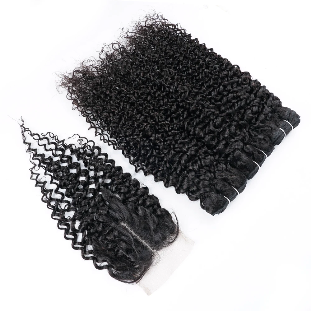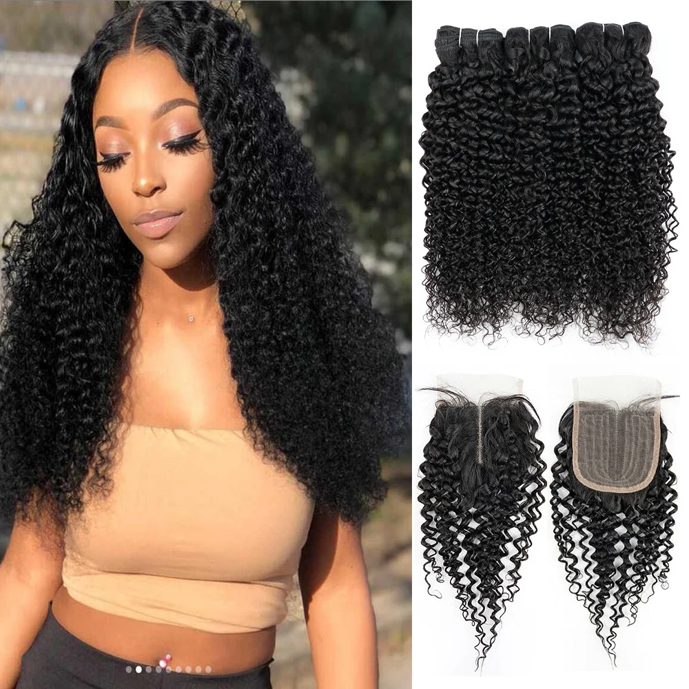 Пряди человеческих волос с Т-образным закрытием естественного цвета Джерри Кудрявые бразильские человеческие волосы для наращивания.