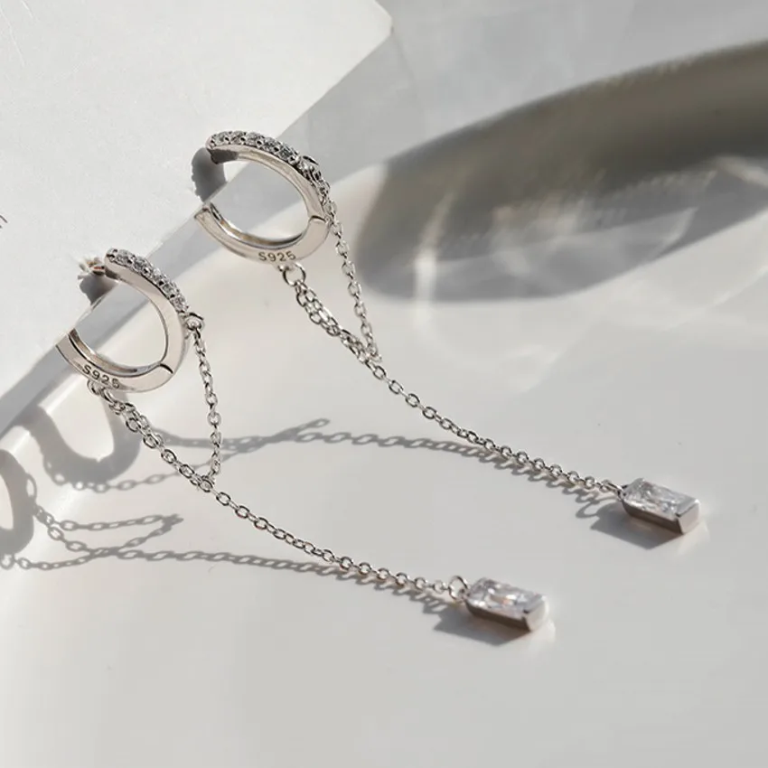 Зажим для ушей Женский, стразы Длинная кисточка, цепочка, 1 шт., с кристаллами из циркония, ювелирные серьги в подарок
