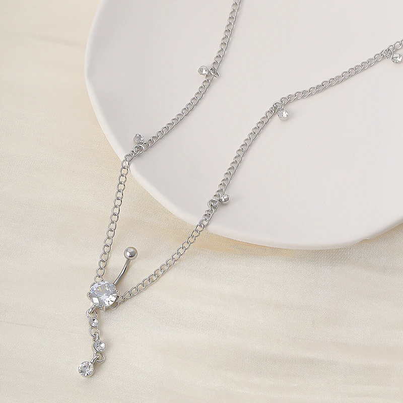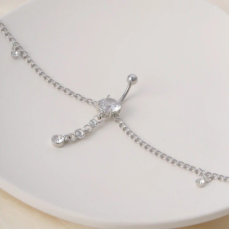Стразы, висячее кольцо на пупок с цепочкой на талию, подвеска-капля для пупка, ювелирные изделия для пирсинга тела, ювелирные изделия, аксессуары