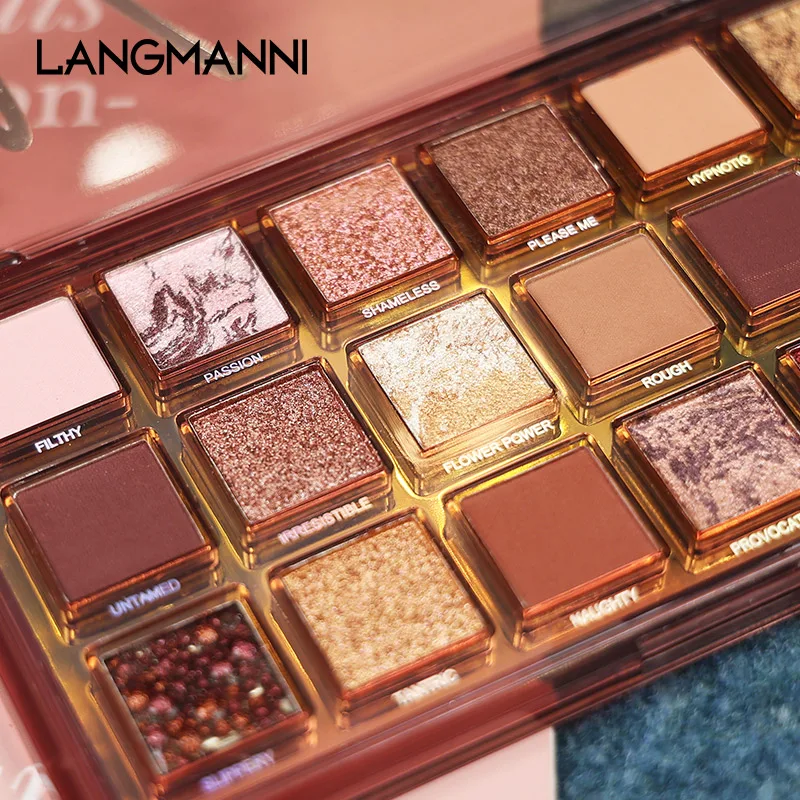 Langmanni 18 оттенков блестящие тени для век матовые перламутровые полоски из свинины граната семена обратной розы палитра теней для век TSLM