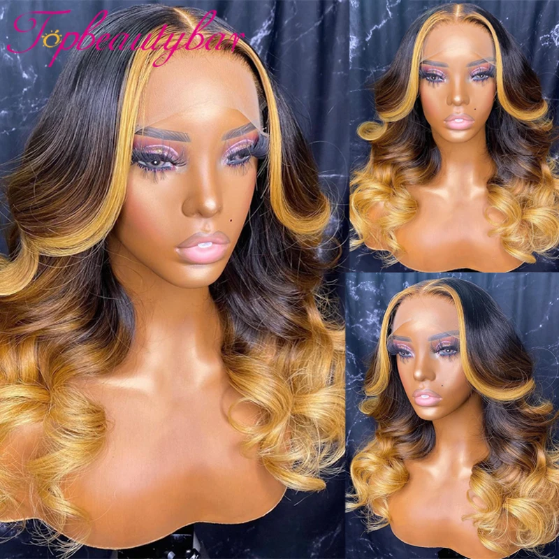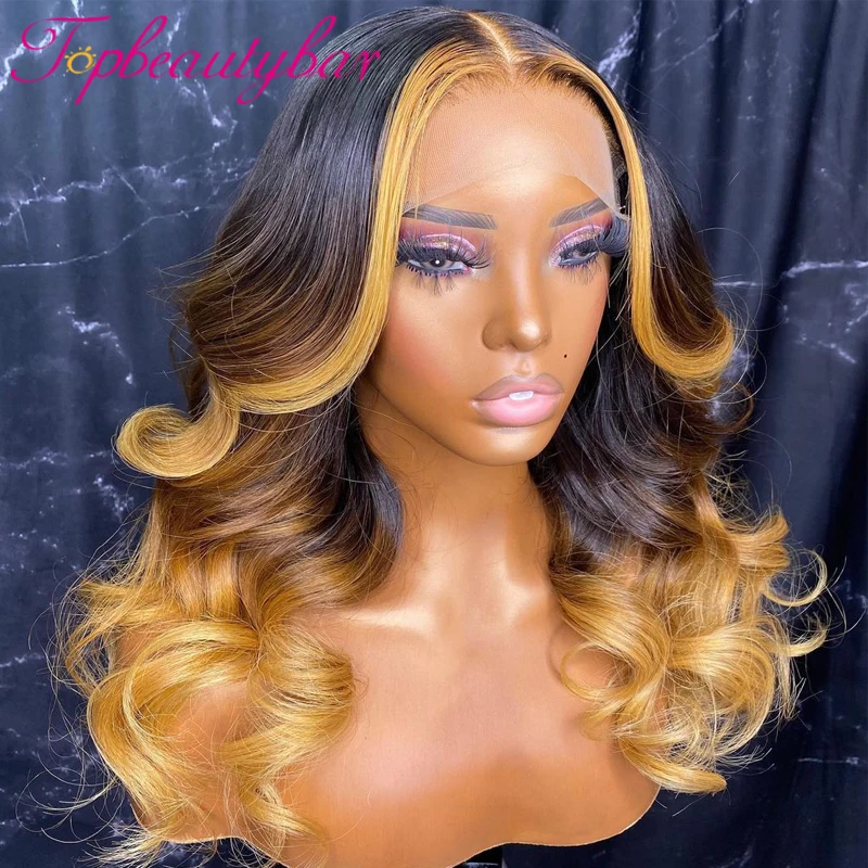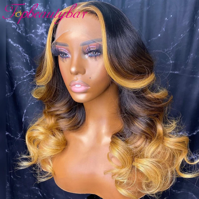 Блонд, Цветной человеческих волос парики 13x4 эффектом деграде (переход от темного к волнистые Синтетические волосы на кружеве парик 180% прозрачный Синтетические волосы на кружеве парики из натуральных волос для Для женщин