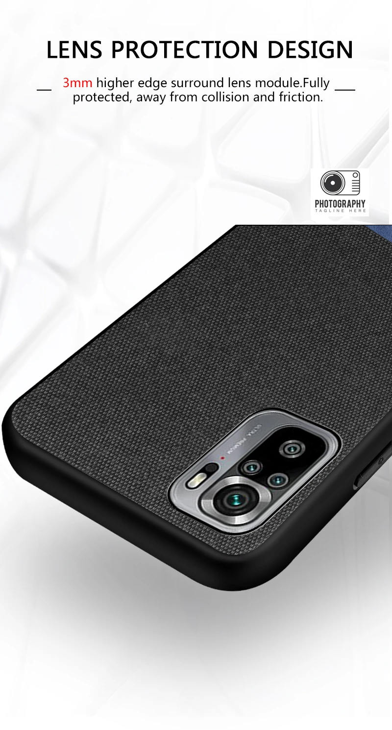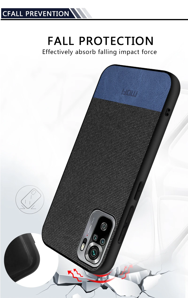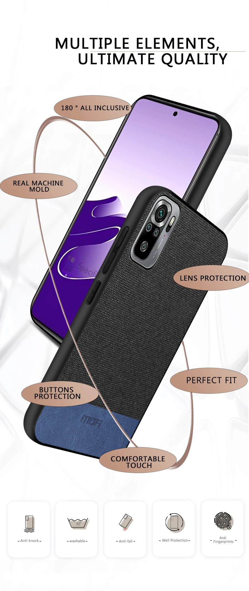 Чехол для Xiaomi Redmi Note 10, противоударный, тканевый, черный, силиконовый