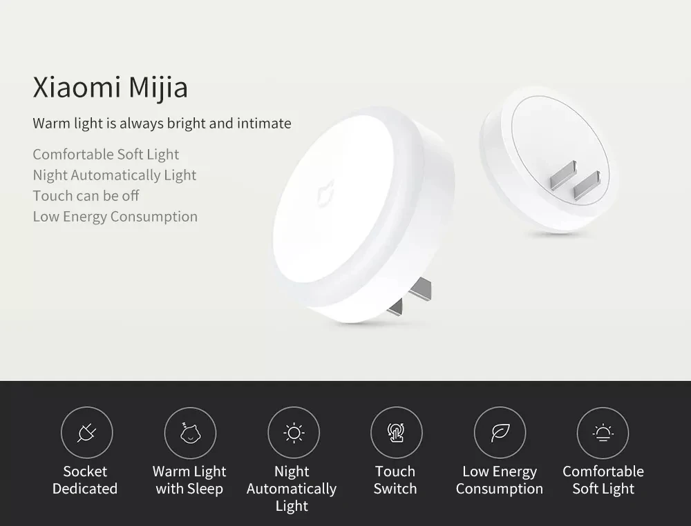 Умный светодиодный ночник Xiaomi Mi Mijia, сенсорный Ночной светильник для дома, коридора, спальни, коридора, коридора, розетки 220 В переменного тока, вилка