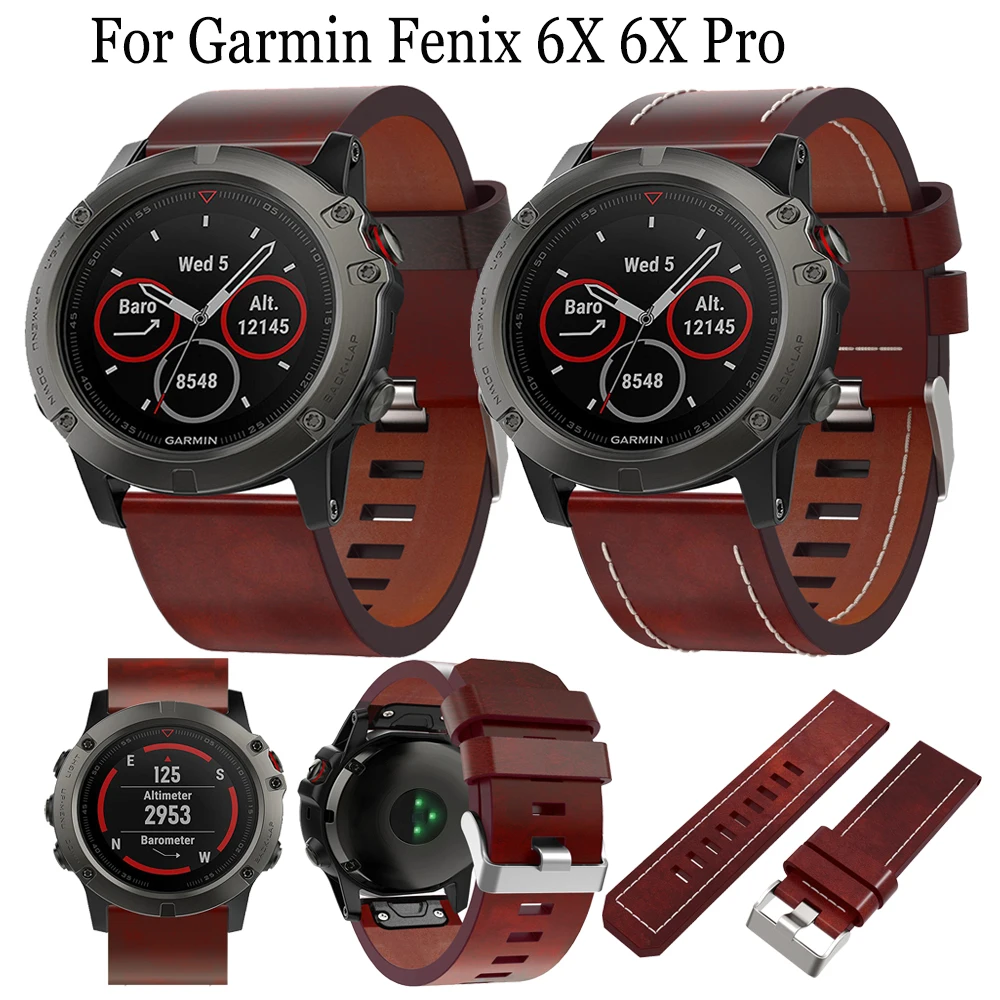 Кожаный ремешок для часов 26 мм, сменный ремешок для часов Garmin Fenix 3 3HR, регулируемый браслет для часов Garmin Fenix 6X 6X Pro