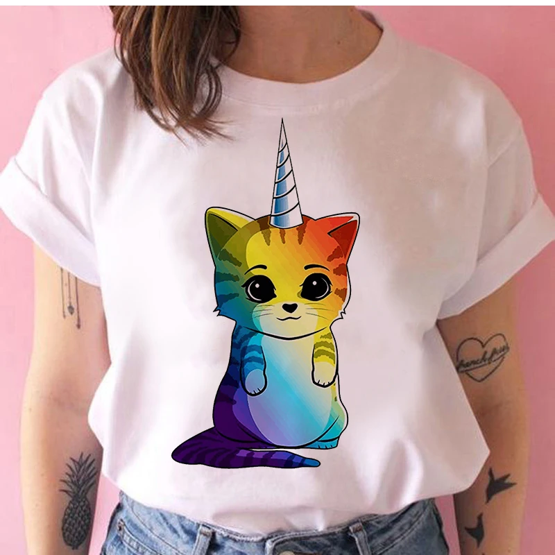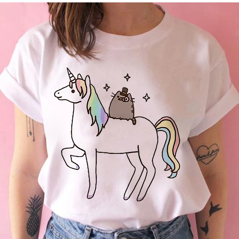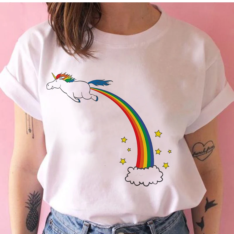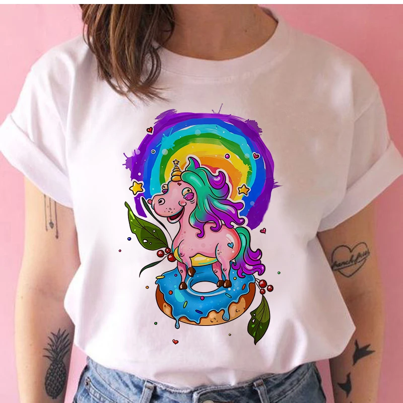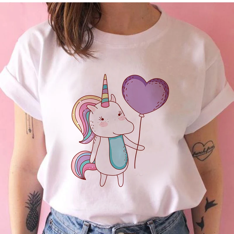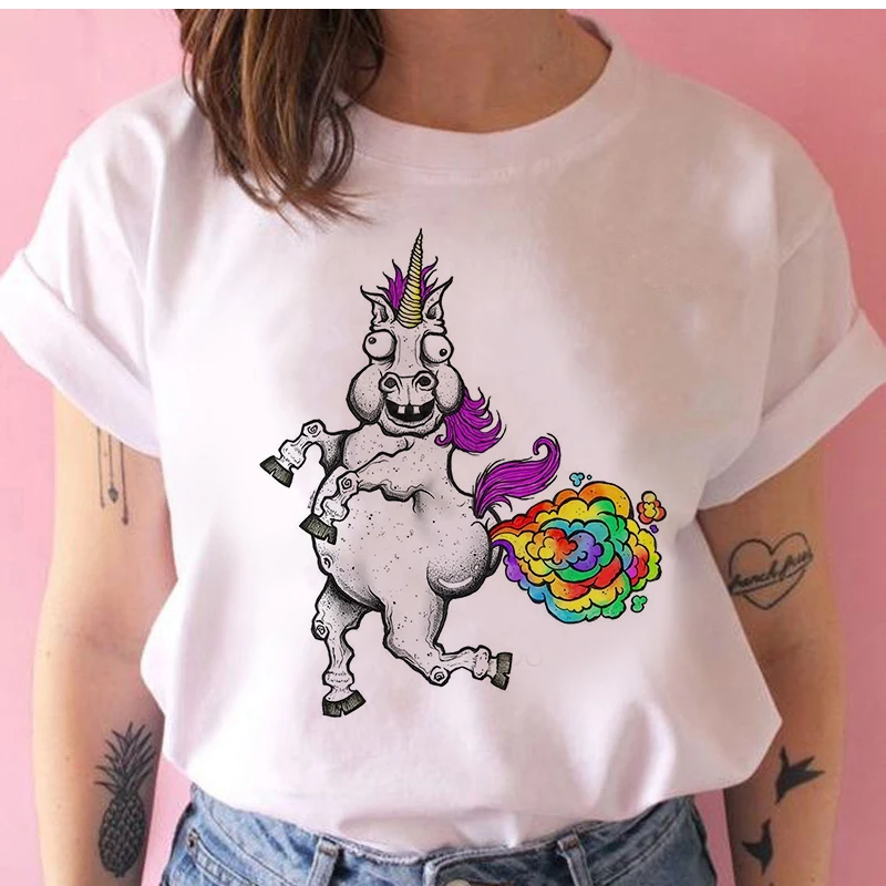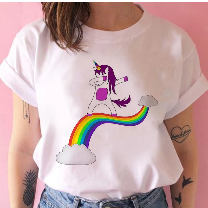 Единорог 2019 Лето Harajuku KawaiiХлопковые Единорог Футболка Unico...