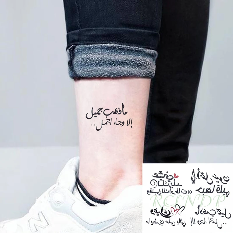 Водостойкая Временная тату-наклейка, буквенный дизайн, арабское пис...