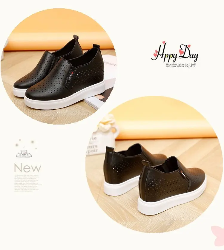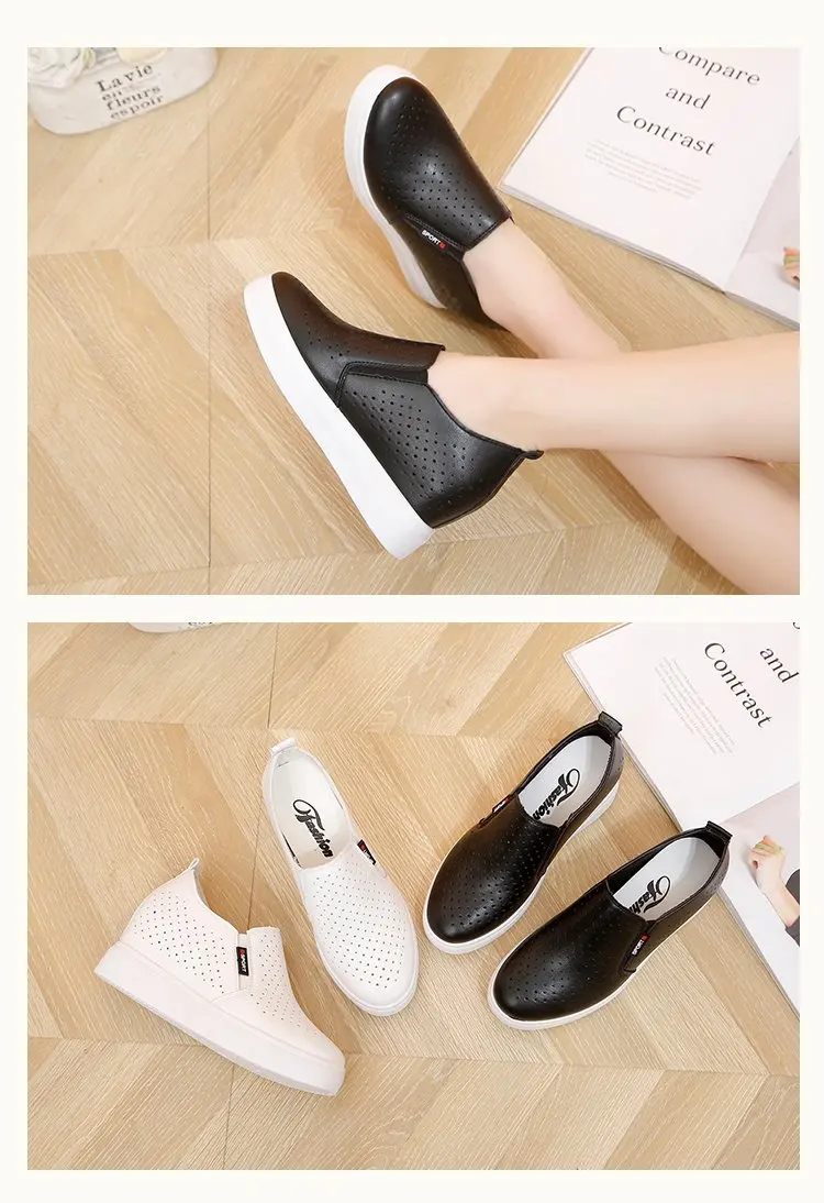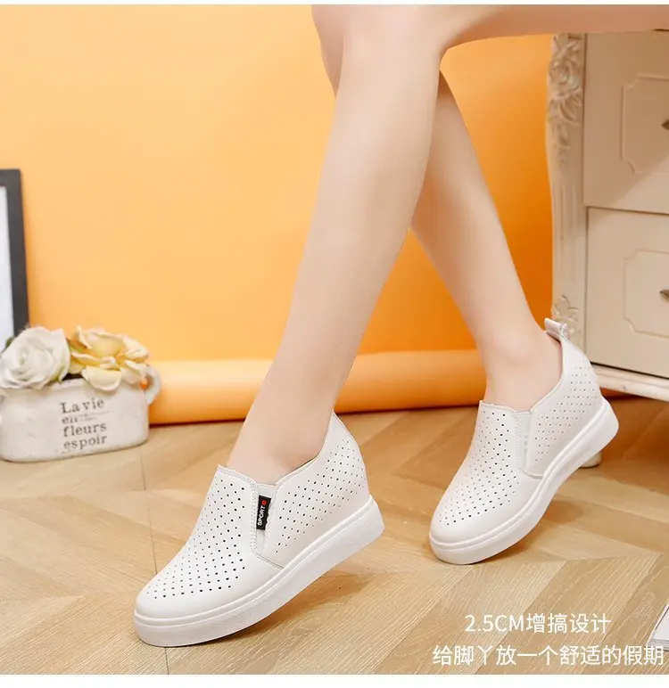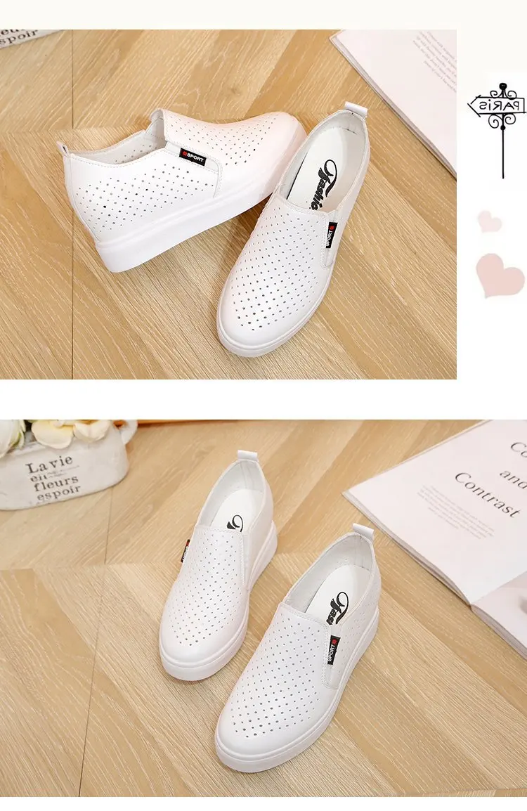 Кроссовки на танкетке женские, повседневная обувь на высокой платформе, туфли на танкетке со скрытым каблуком, белые