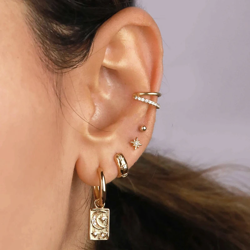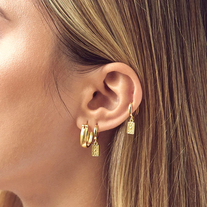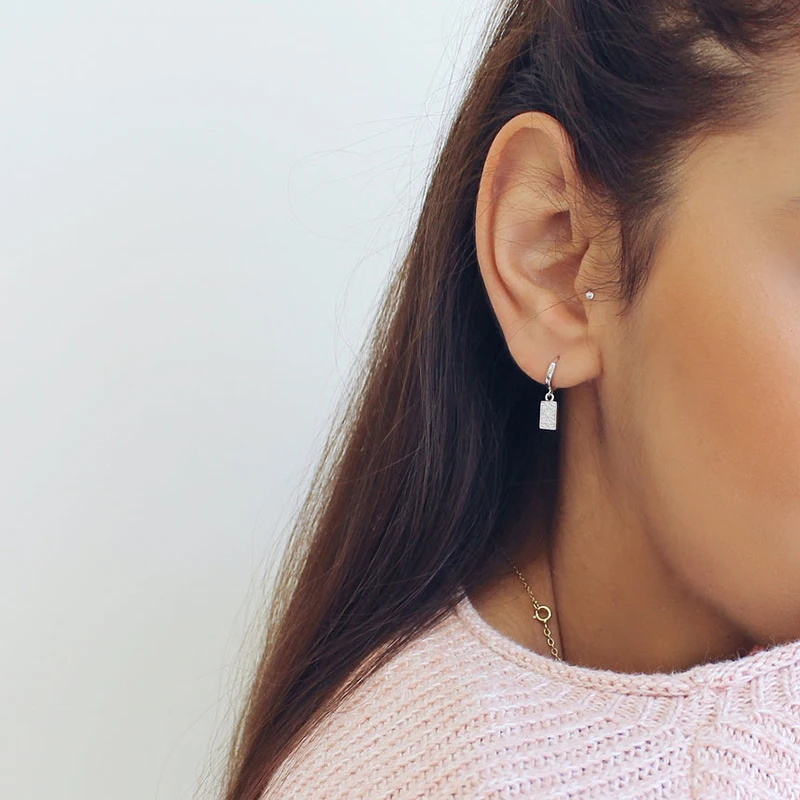 Женские серьги-кольца из серебра 925 пробы с квадратной подвеской