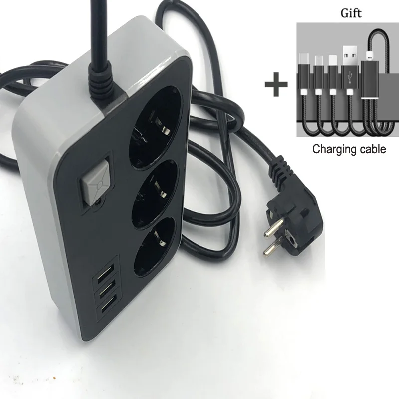 Описание товараНесколько гнезд Технические данные:Номинальное напряжение: 250 ВНоминальный ток: 10AНоминальная мощность: 2500 ВтВыход USB: 5 В, 1 АВыходной порт: 3 разъема + 3 usb-портаДлина кабеля: 1,8 мРазмеры: 15 X 10X 3,5 см Размер упаковки (Д х Ш х В):Вес: 400 гУдлинительный Кабель 1,8 мБезопасно адаптироваться к различным устройствам для зарядкиМодная удобная домашняя одежда, тонкая работа, простая МодаСтабильная Выходная зарядка быстрееИнтерфейс пластиковой головки более прочный и не легко сломатьСовместимость: подходит для различных мобильных телефонов, iphone,ipod,ipad, планшетных ПК, PDA,bluetoth гарнитуры и других цифровых продуктов.Proudct включает1 usb-разъем1 подарок (USB светильник/зарядный кабель)