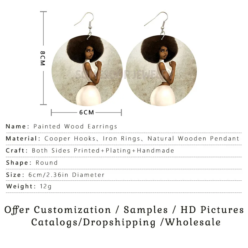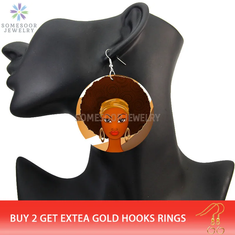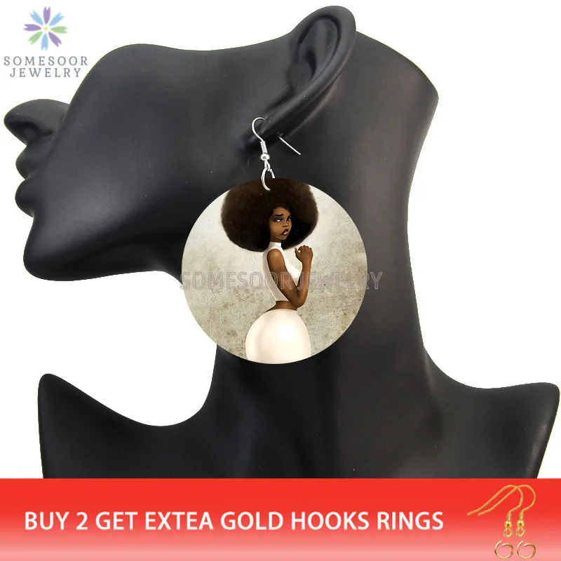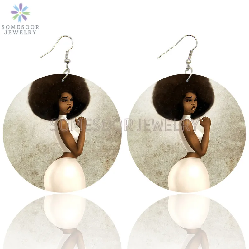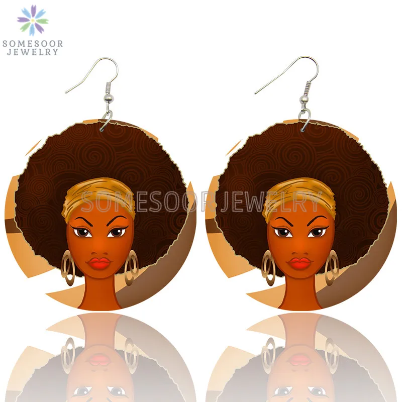 SOMESOOR афро вьющиеся красивые леди петли деревянные серьги-капли Черные натуральные волосы Художественная печать этнические Висячие ювелирные изделия для женщин Подарки