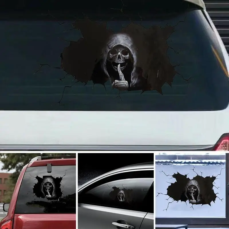 40*30 см бесшумный череп забавная наклейка для автомобилей Автомобильные наклейки заднего стекла демон отражающая наклейка черный цвет