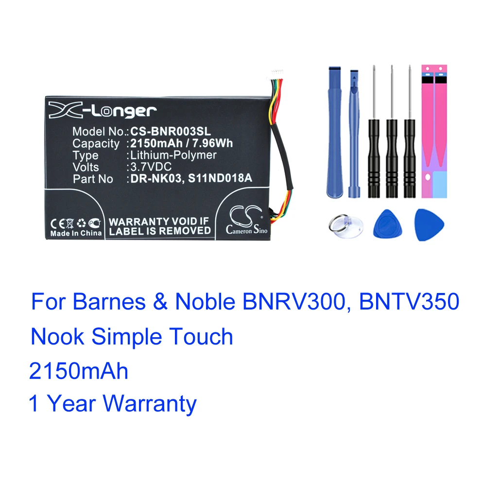 Электронная книга чтения электронных книг Батарея CS-BNR003SL для Barnes Noble BNRV300, BNTV350, уголок простым прикосновениям Кэмерон китайско батареи 2150 мАч