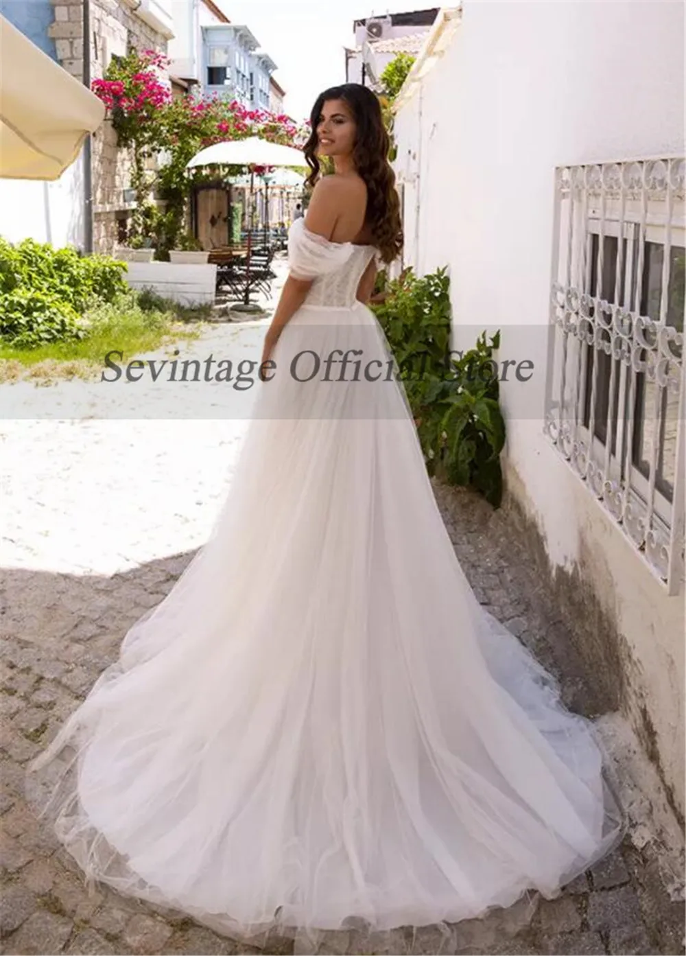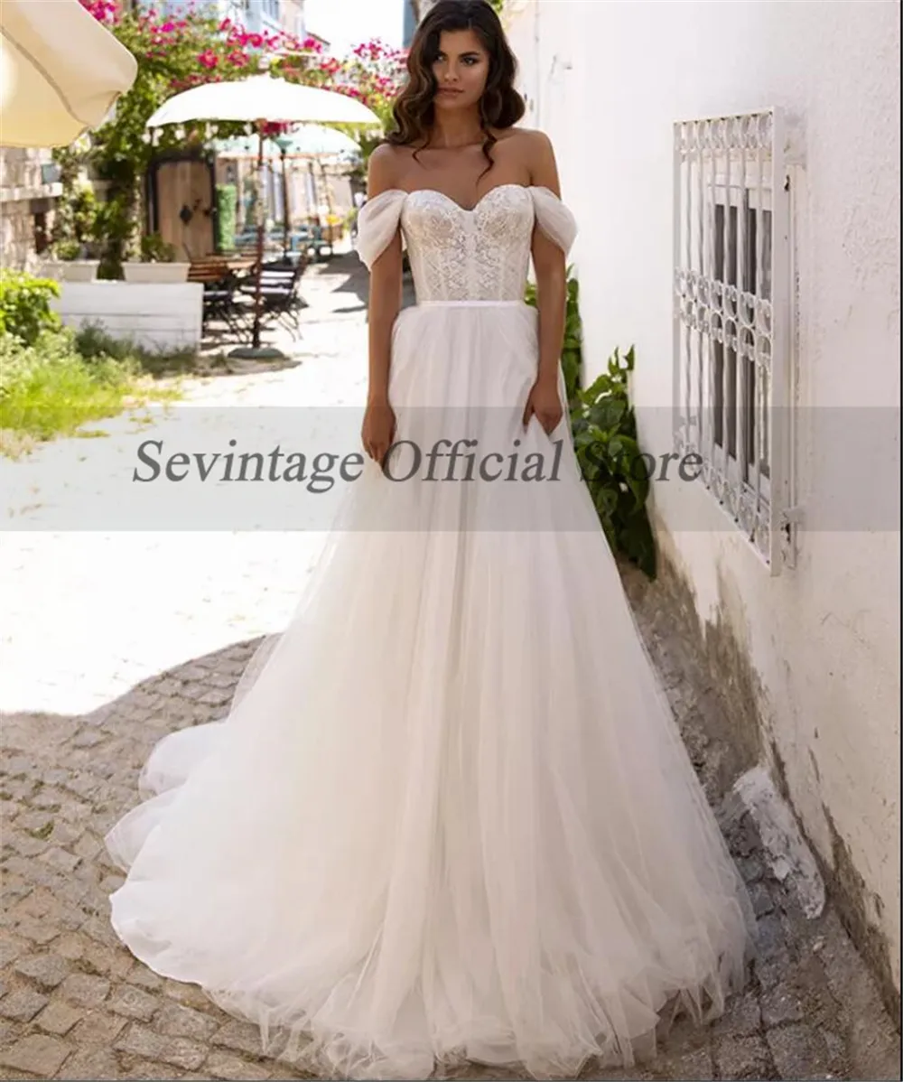 Кружевное свадебное платье Sevintage А-силуэта с открытыми плечами, Пляжное свадебное платье в стиле бохо со складками, свадебное платье в сельском стиле на заказ