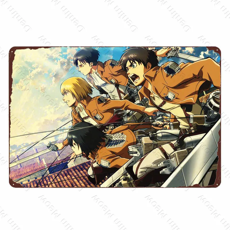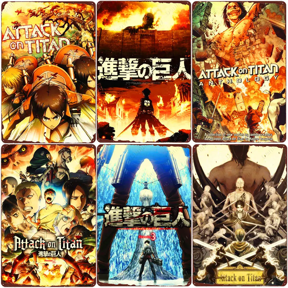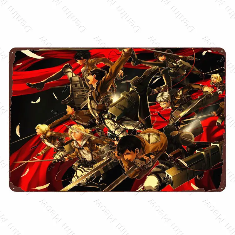 Атака на Титанов винтажный постер японского аниме металлическая жестяная вывеска домашняя комната декоративная тарелка художественная Живопись Мультфильм комиксы наклейка MN170