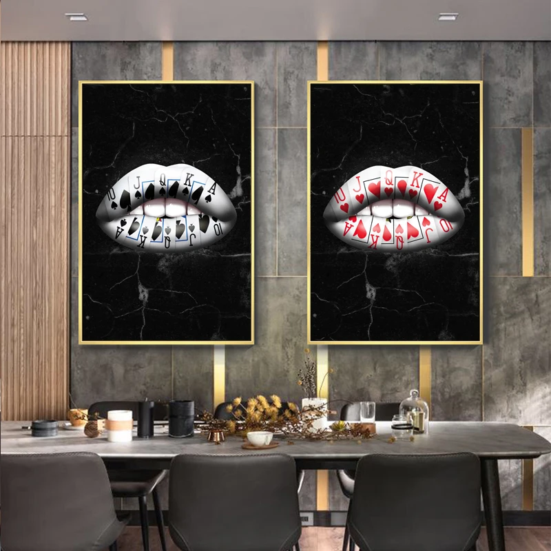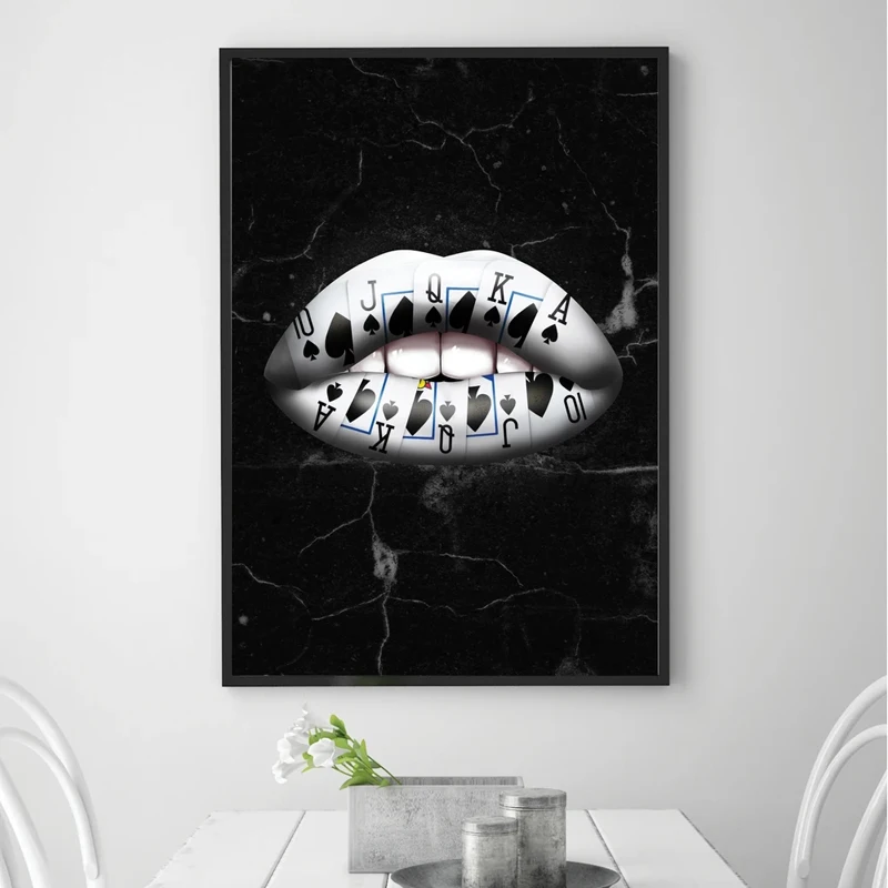 Плакаты и принты на холсте, с изображением губ, пик, сердца, для гостиной