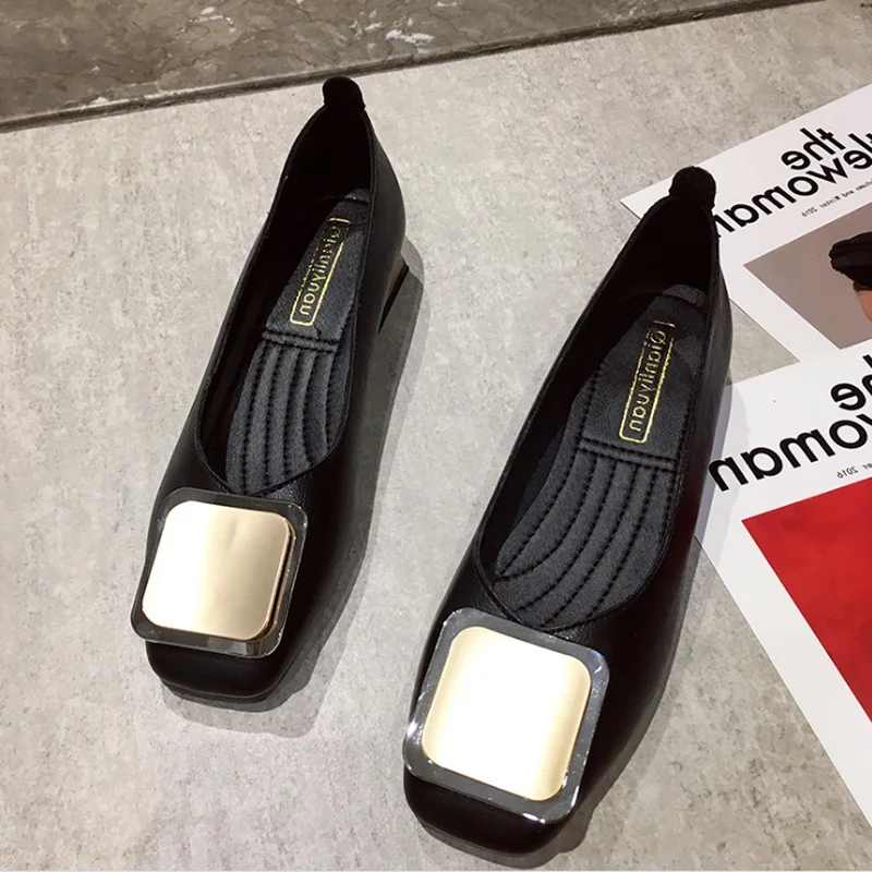 Женские туфли на низком деревянном каблуке, балетки с квадратным носком и пряжкой, лоферы без застежки, большой размер 34- 41, 2021