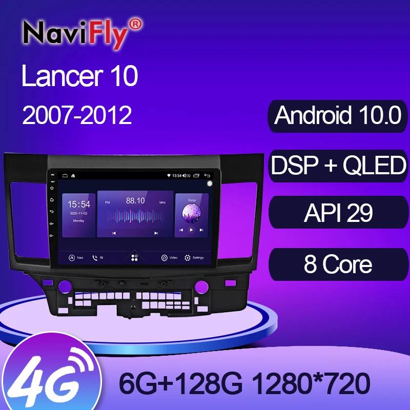NaviFly 7862 QLED экран 1280*720 6 ГБ + 128 ГБ Android 10 автомобильный Радио мультимедийный плеер для Mitsubishi Lancer 10 CY 2007 - 2012
