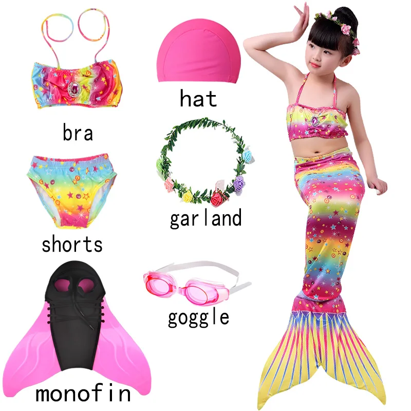 2021 Новый 6 шт.компл. Радуга Стиль купальник с хвостом Русалочки с...