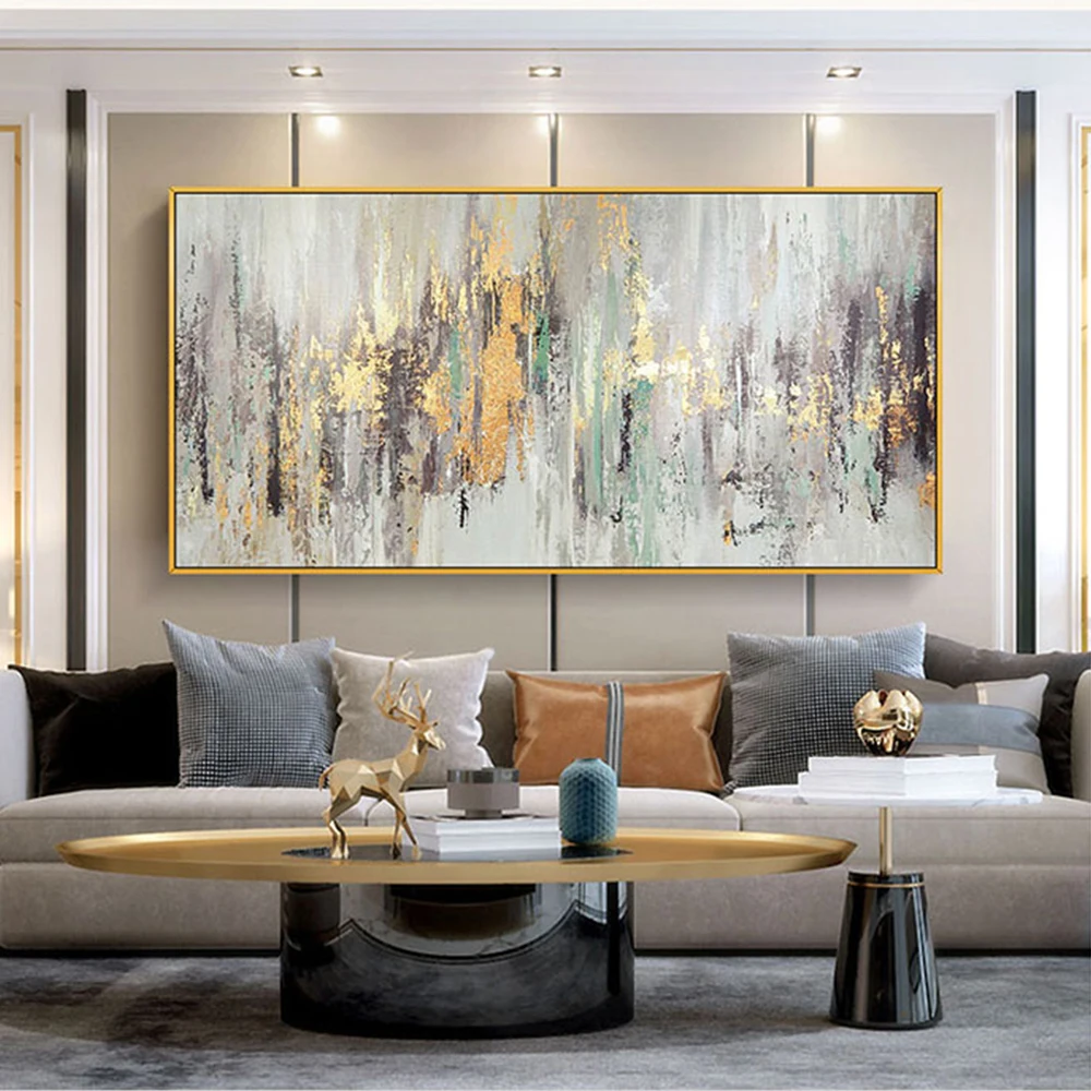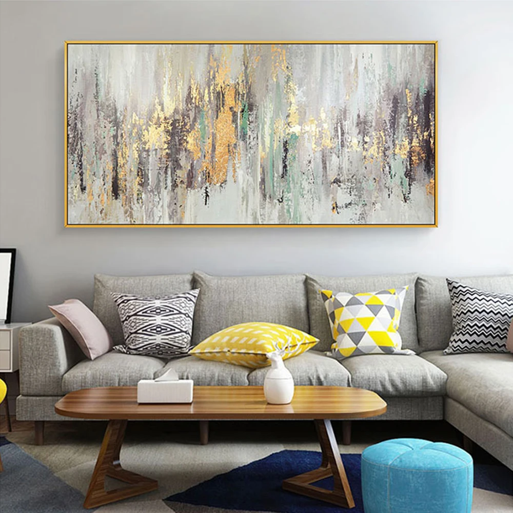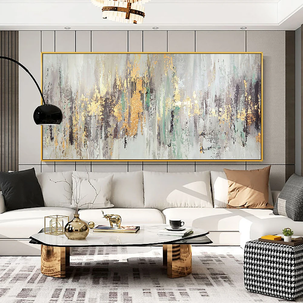 Большая Настенная картина ручной работы на холсте для декора гостиной, абстрактный пейзаж, Золотая картина маслом, ручная роспись