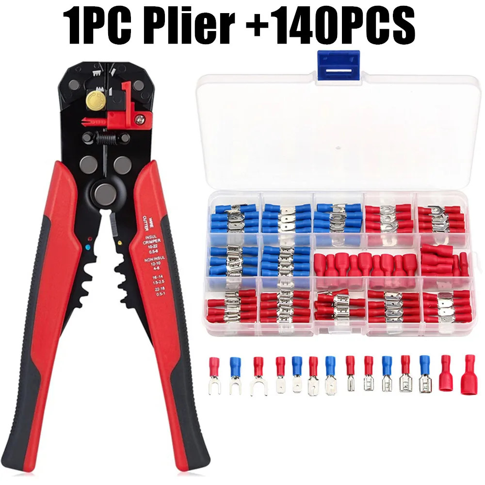 140 шт. Полный Изолированный вилка U-типа красныйсиний набор клемм ОБЖИМНАЯ лопатка для электрического кабеля кольцевой соединитель и 1 шт обжимные плоскогубцы
