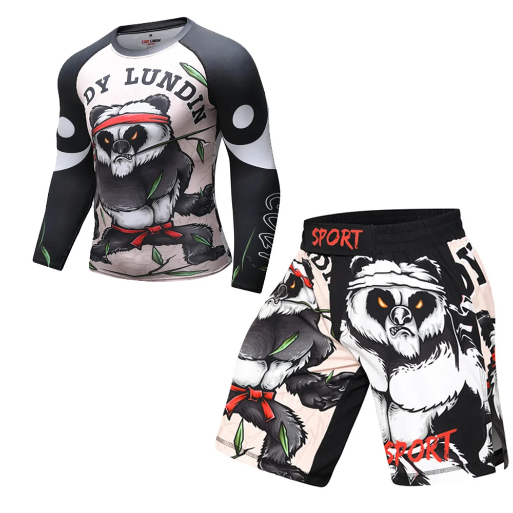 Bjj GI MMA фитнесс 3D принт панды боевая одежда Муай Тай Рашгард компрессионные штаны для кикбоксинга облегающие брюки комплект боксерских Джерси