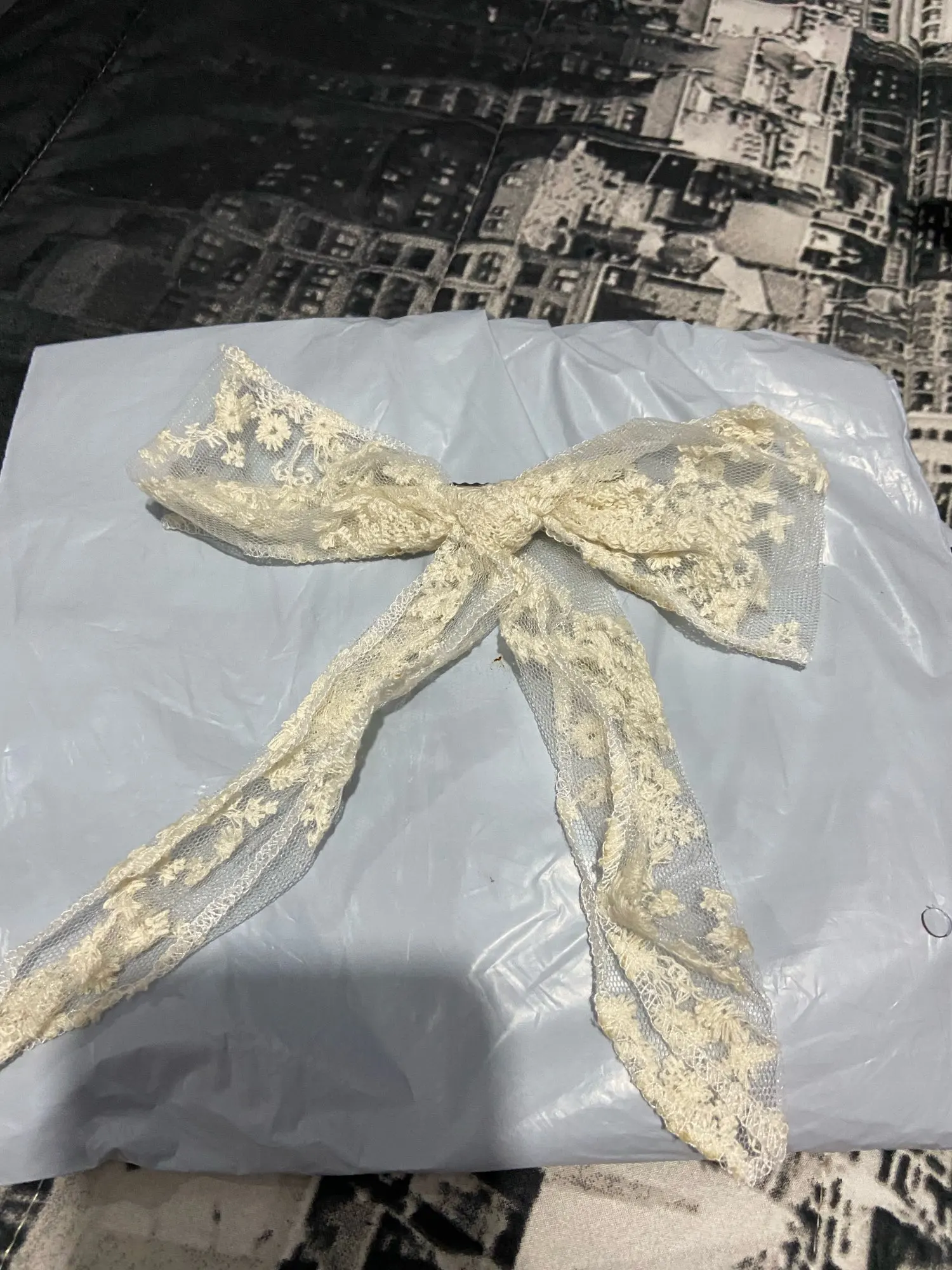 Немного не соответствует картинке. Сам бант форму не держит,обыкновенная кружевная ленточка завязанная на резинку.