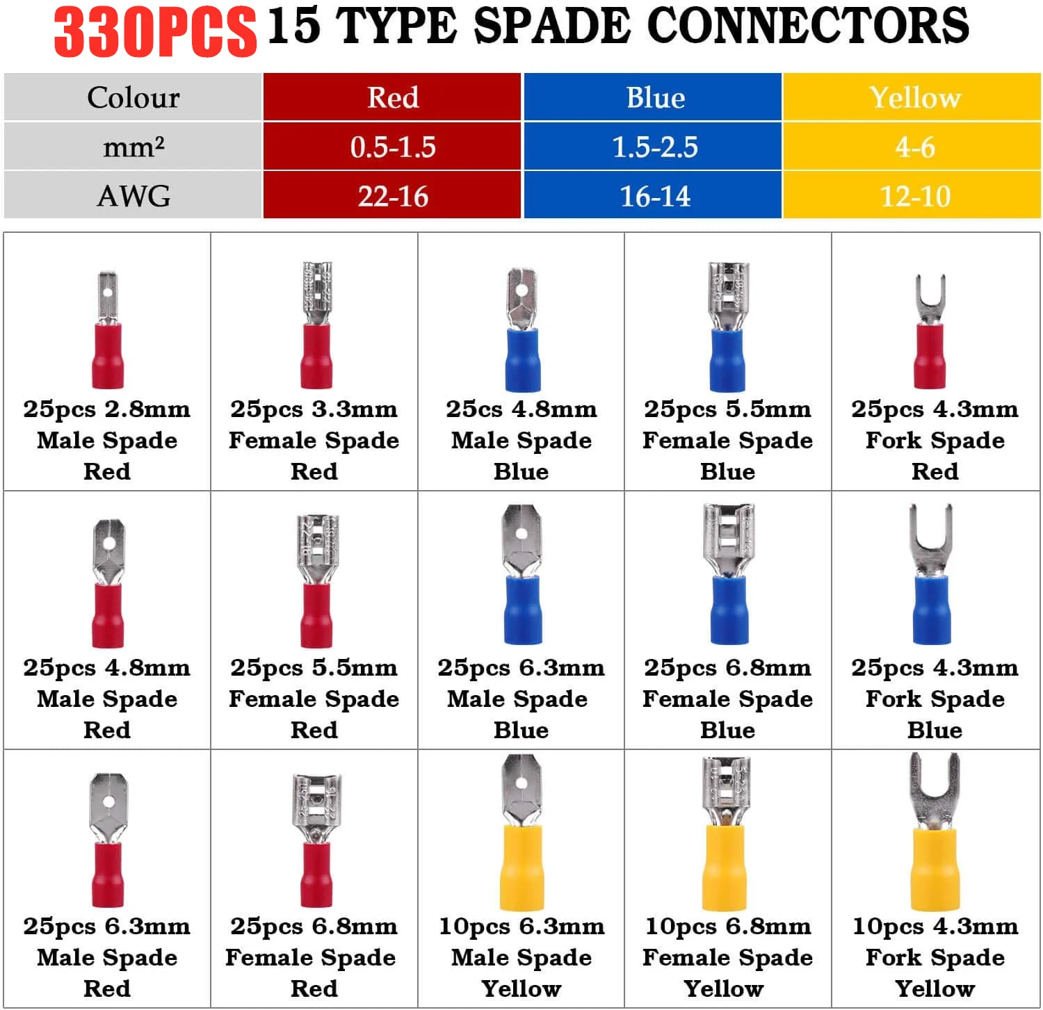 280 шт. клеммы лопаты изолированный Кабельный соединитель Ассорти э...
