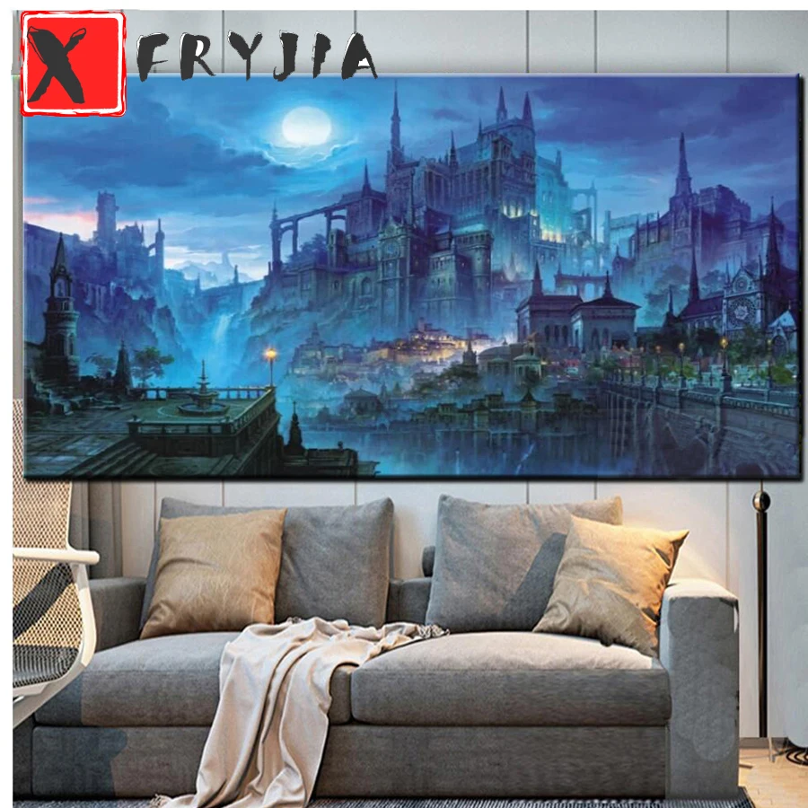 Большая картина из страз "сделай сам", пазл, полная картина из квадратных и круглых страз, Фэнтезийный ночной замок, вышивка крестиком стразы, мозаика, подарок, украшение для дома