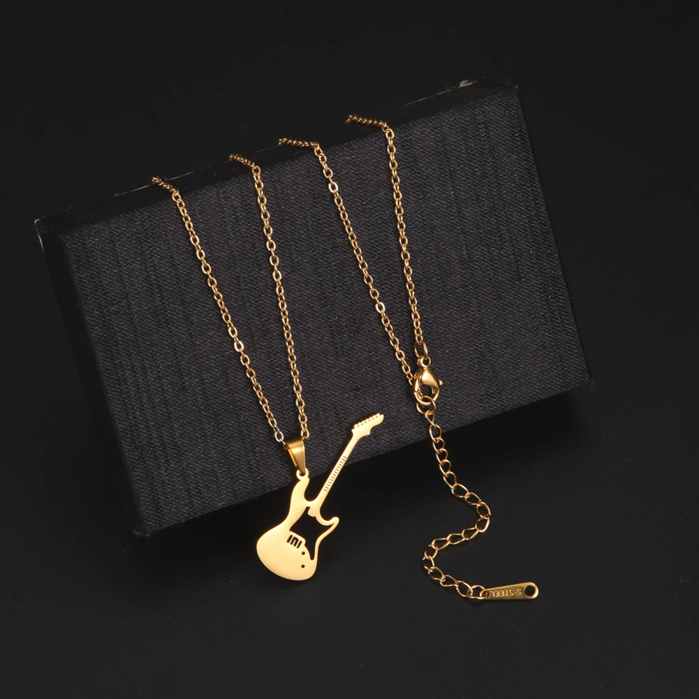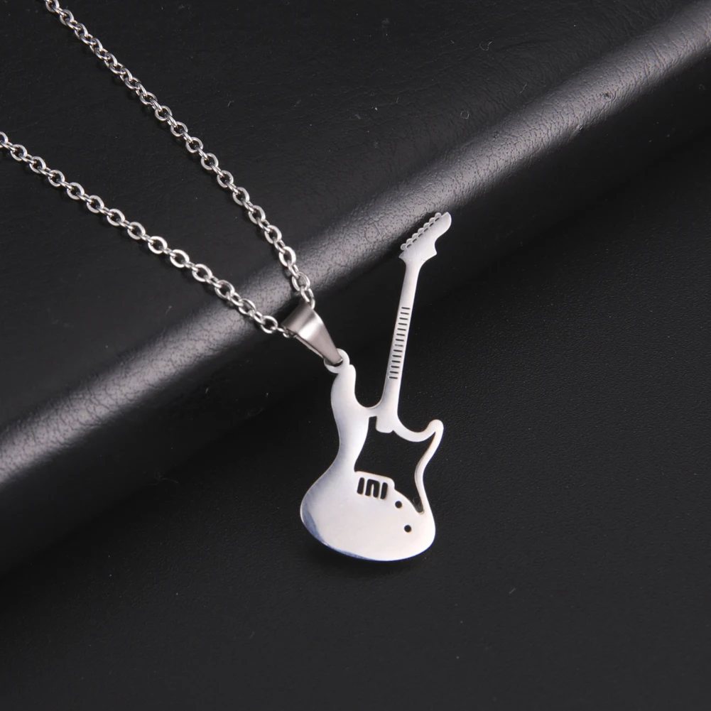 Ожерелье в форме гитары, чокер, из нержавеющей стали, с подвеской
