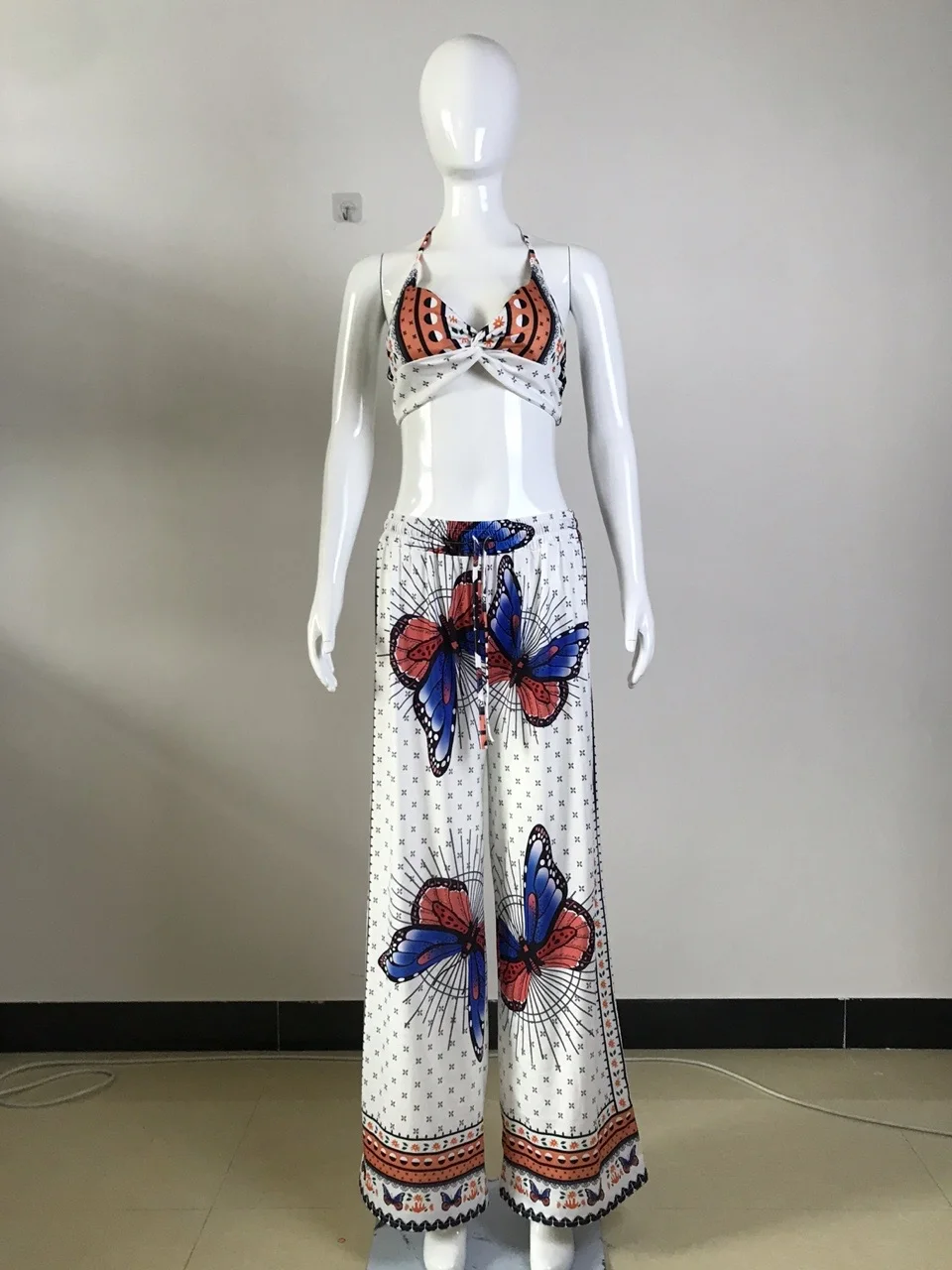 Комплект с бабочками для женщин, брюки с широкими штанинами и бюстг...