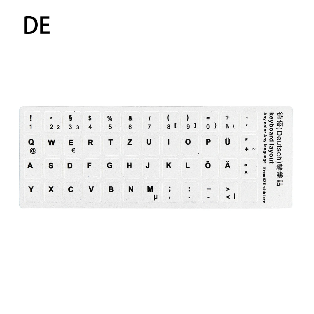 -100% новый и высокое качество.-Стандартные наклейки на клавиатуру подходят для клавиш на настольных и портативных компьютерах.-Уникальное покрытие предотвращает износ и долговечность.-Использование твердого, легко наносится и удаляет клей без остатка.Спецификация:Материал: ПВХПрименимые модели: все 10 дюймов или выше ноутбуки, настольные клавиатуры универсальныПосылка включает в себя:1x наклейка на клавиатуру