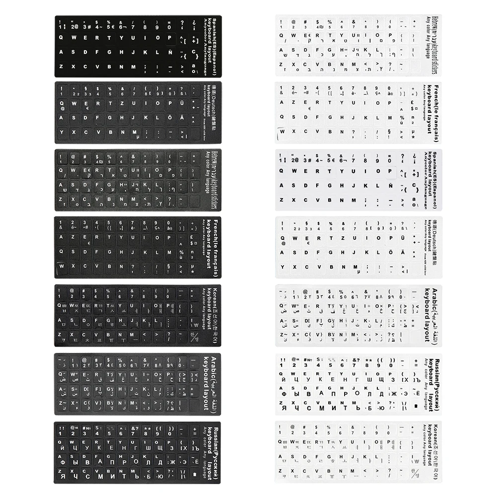 Наклейки на клавиатуру с русскими буквами для ноутбука от 8 до 10 дюймов, корейский иврит, французский, испанский, немецкий, SaudiArabian, Макет ноутбука
