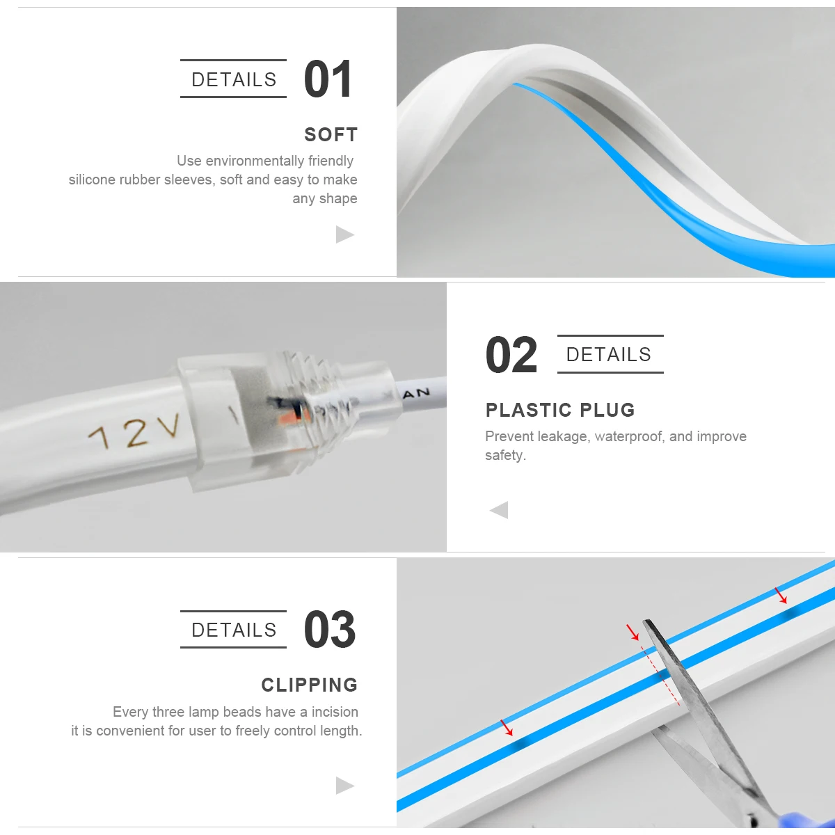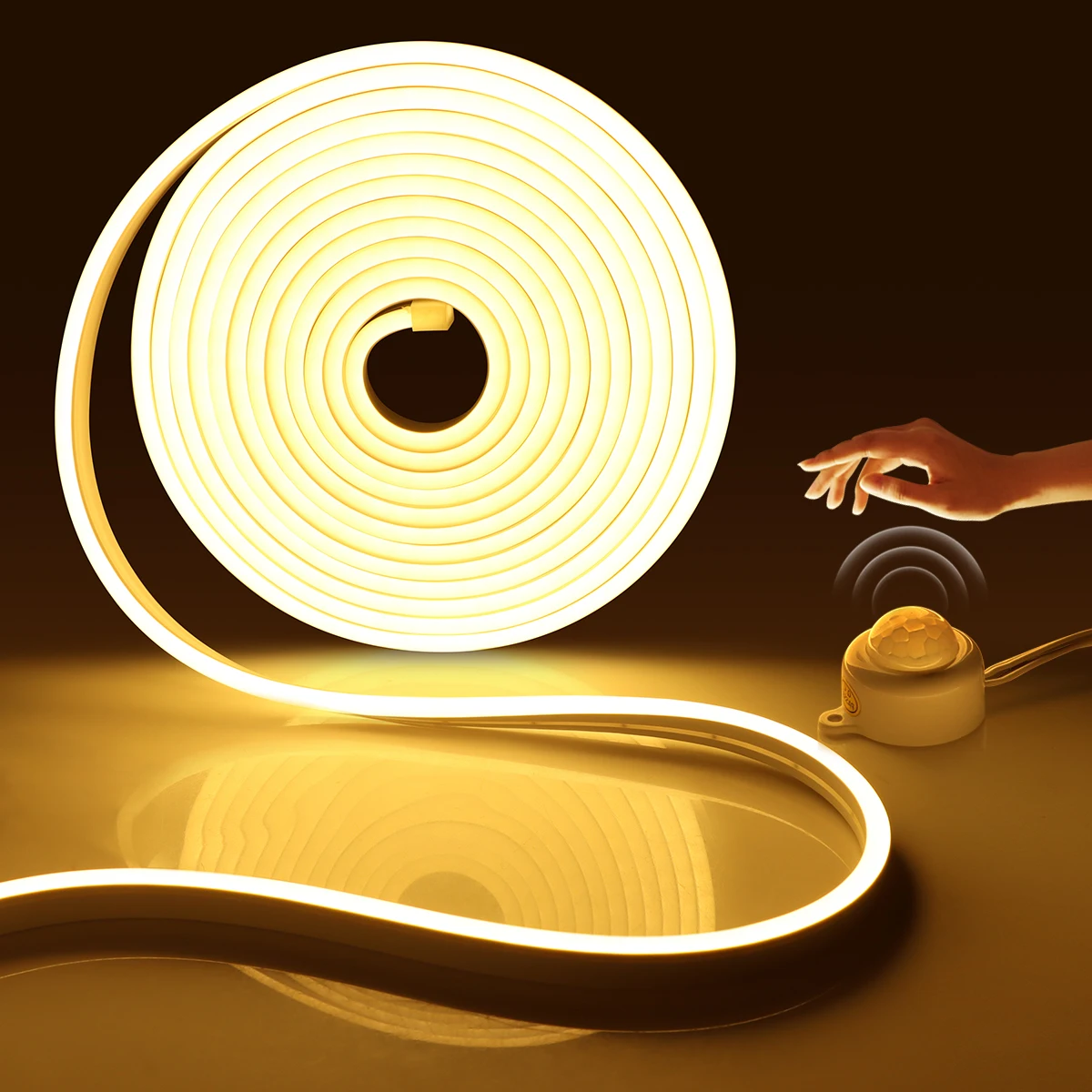 Тип: светодиодный неоновый датчик движенияВходное напряжение: DC12VСветильник: теплый белый/красный/зеленый/синий/розовыйДлина: 1 м/2 м/3 м/4 м/5 мВодонепроницаемый: водонепроницаемый IP67Диапазон датчика: <8 мВремя задержки: 20-350s (регулируется)Можно резать единица измерения-сантиметр 2,5 см (на маркировку интервалы)Длительный срок службы:> 50000 часовСветильник датчика: есть (Проверка коэффициента передачи (работать в темное время суток только)