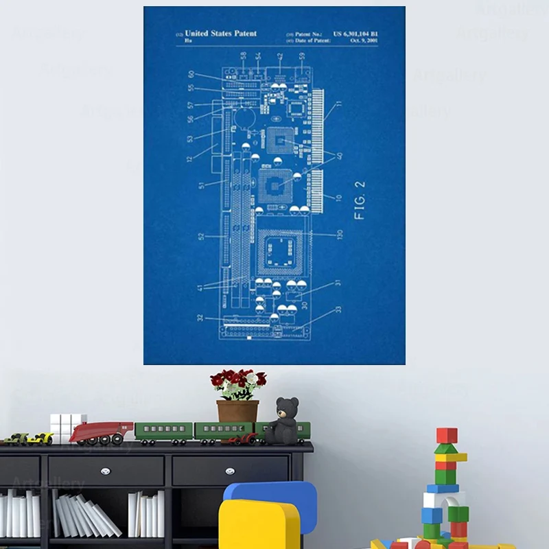 Компьютерная сборка, патент на компьютер, настенное искусство, плак...