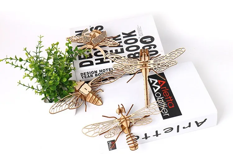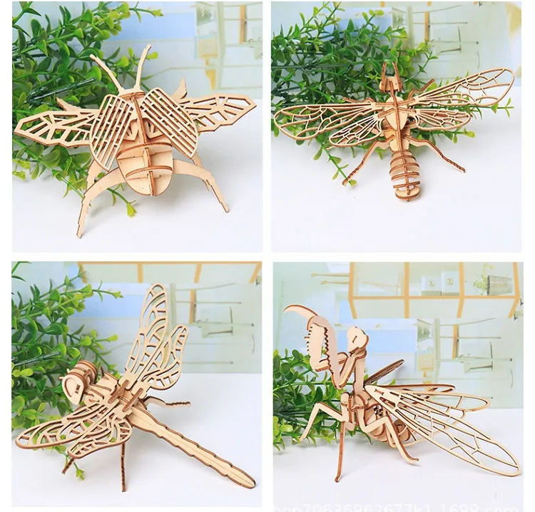 Детский деревянный 3D-Пазл сделай сам, игрушка ручной работы в виде насекомых, животное в сборе, Расписанная игрушка, развивающая игрушка, подарок для детей