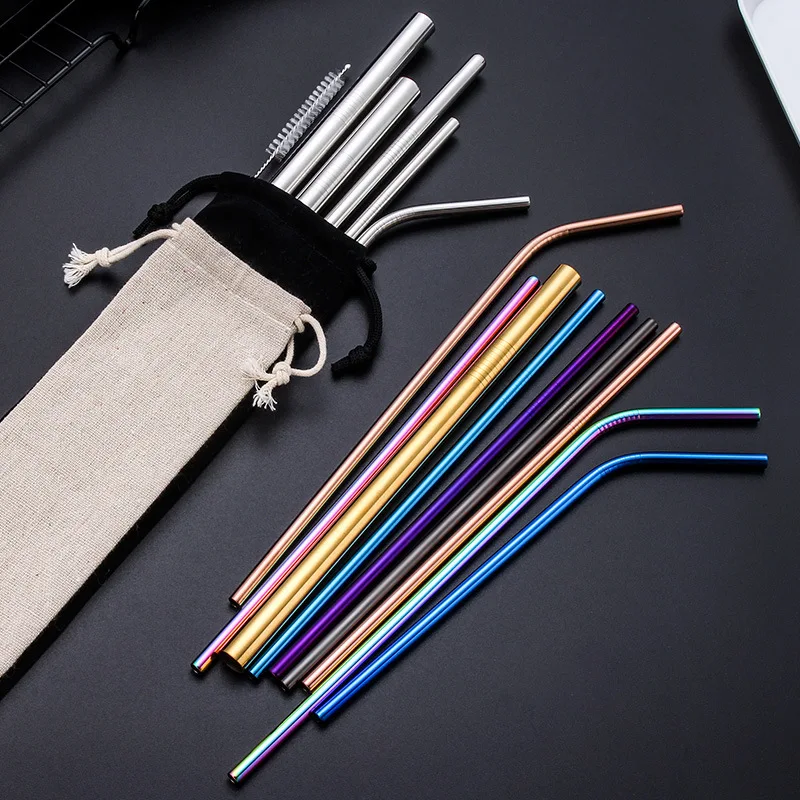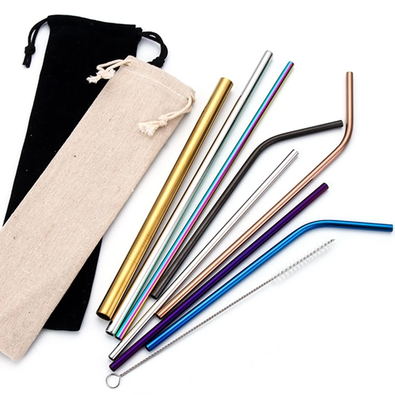 Многоразовые металлические соломинки, нержавеющая сталь набор соломинок, прочные, изогнутые прямая соломинка для питья, для бара, чая, молочного коктейля
