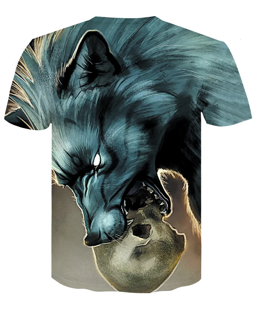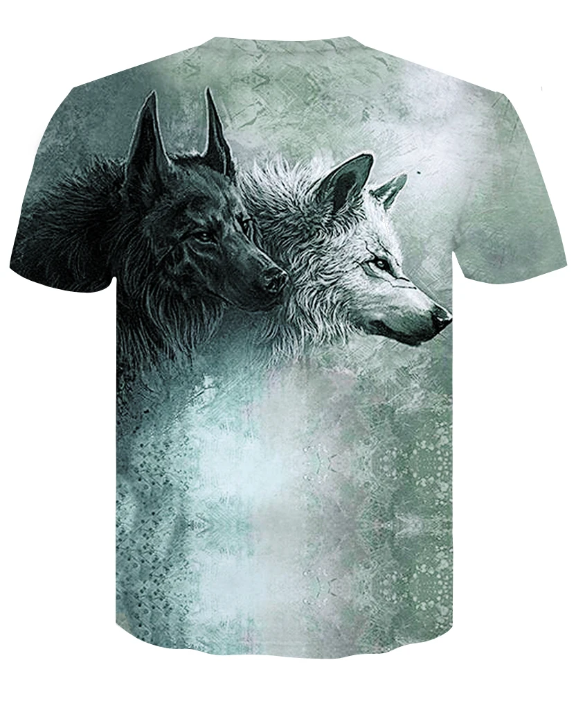 2021 Новая мужская Волк крутая футболка летние серые и белые модные топы с короткими рукавами унисекс с круглым воротом 3D Harajuku футболки