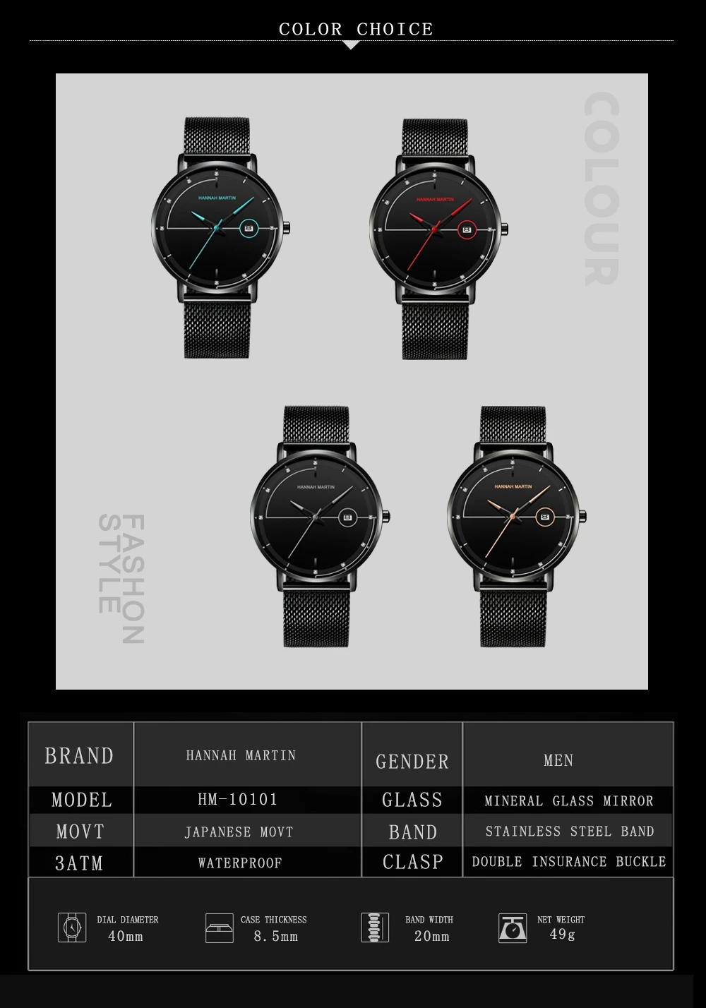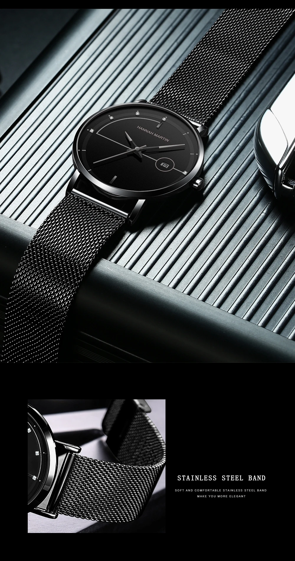 Мужские часы, спортивные, водонепроницаемые, ультратонкие, из нержавеющей стали