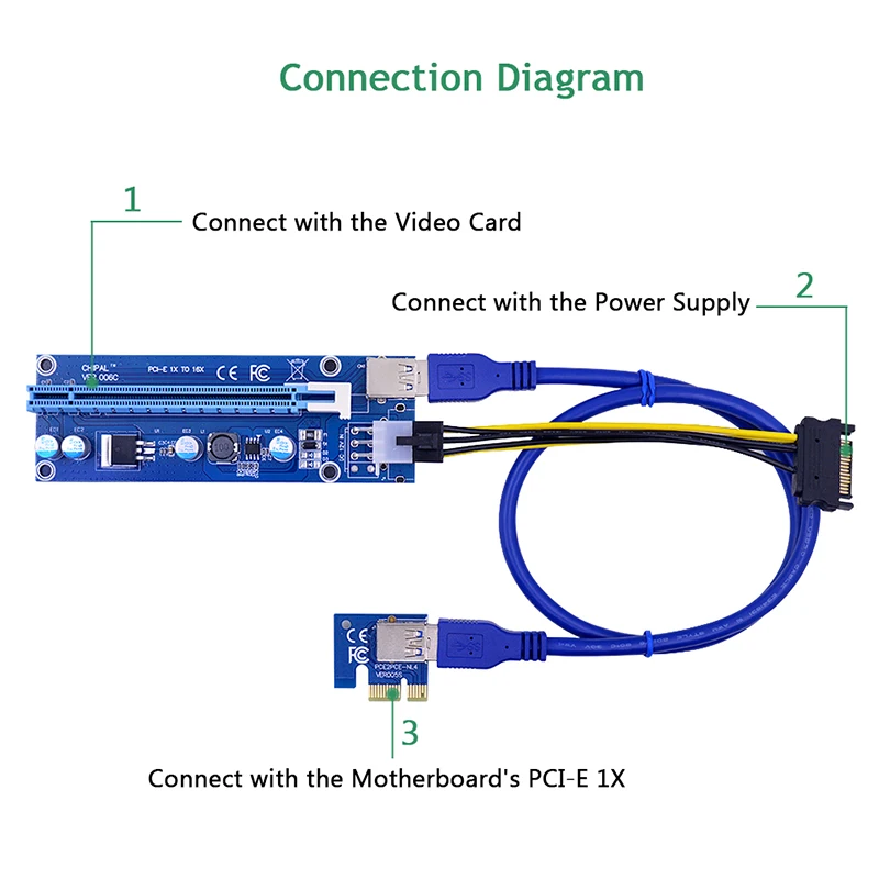 VER006C 60 см переходная карта PCI-E Usb: Miner кабель Riser Pcie Riser PCI-E 1x к 16x Sata 3 USB адаптер Pci часы для шахтер