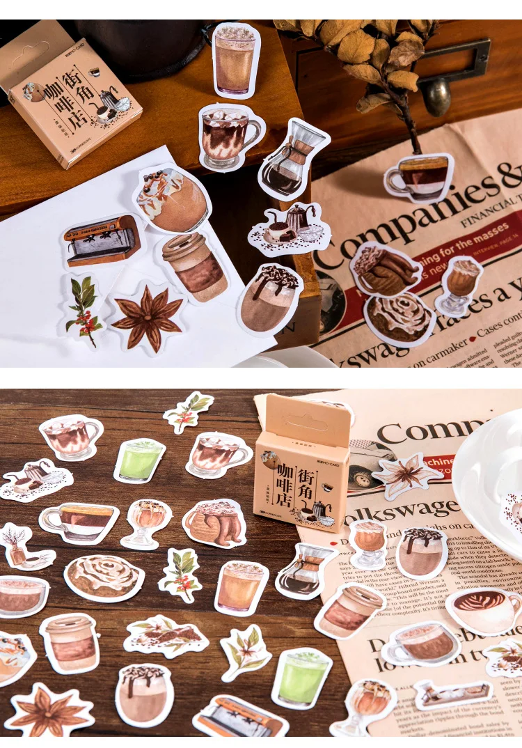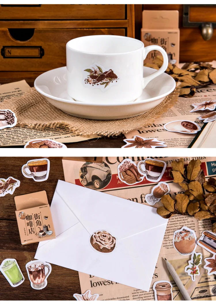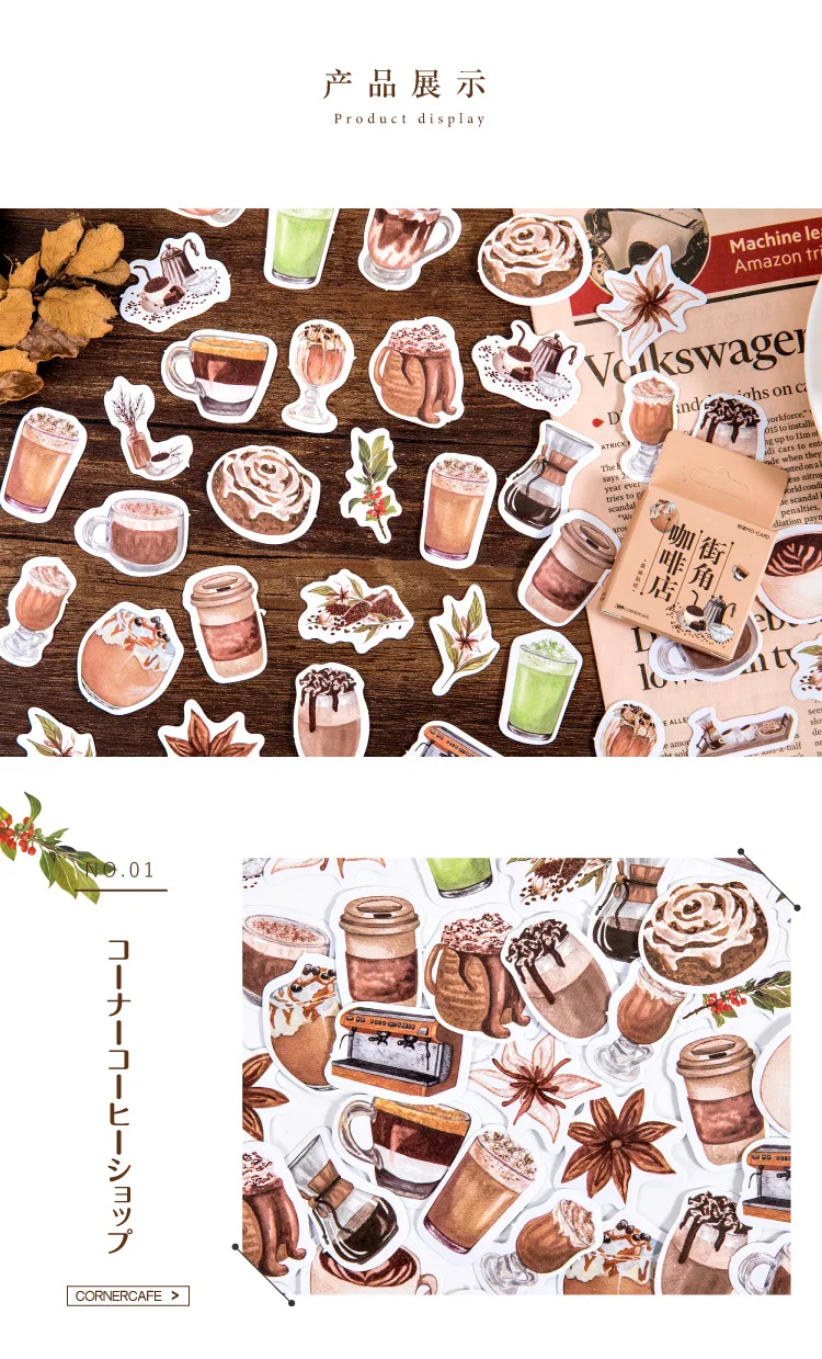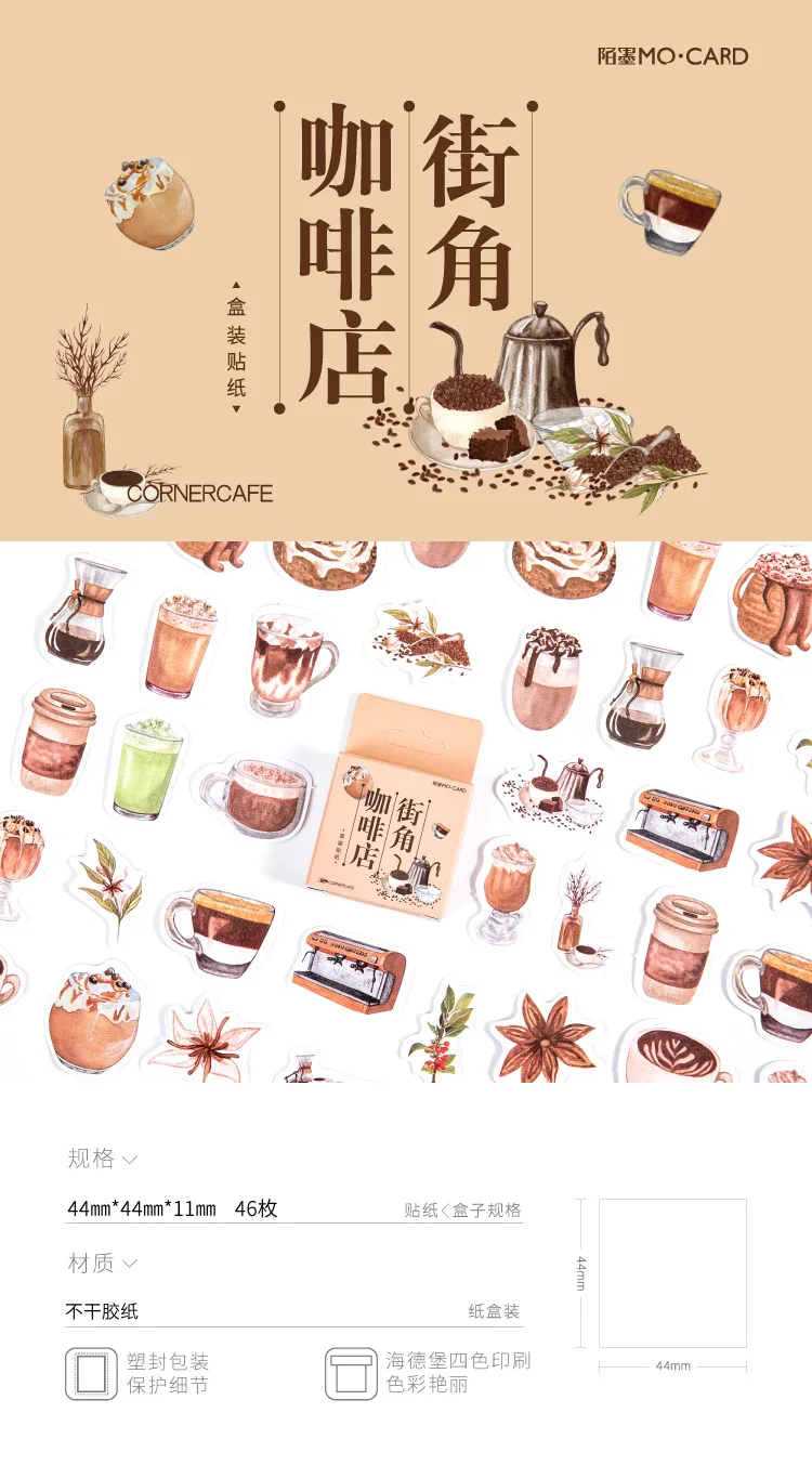 46 шт.упаковка, милые наклейки кофейного уголка кафе декоративные Стикеры для скрапбукинга, сделай сам, крафтовые фотоальбомы, кавайные