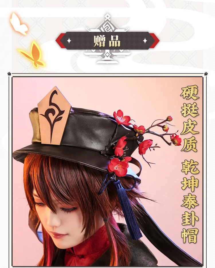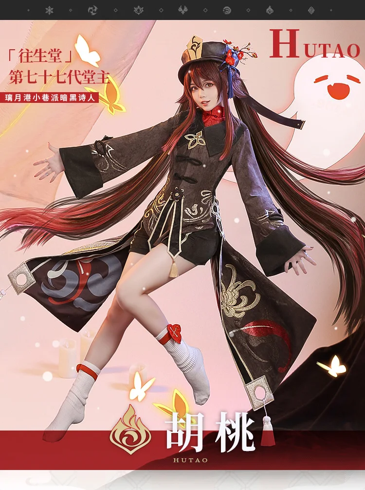 Женский костюм для косплея на Хэллоуин, униформа из аниме Игры геншина Ху Тао, шикарный костюм + шляпа, бесплатная доставка, новинка 2021