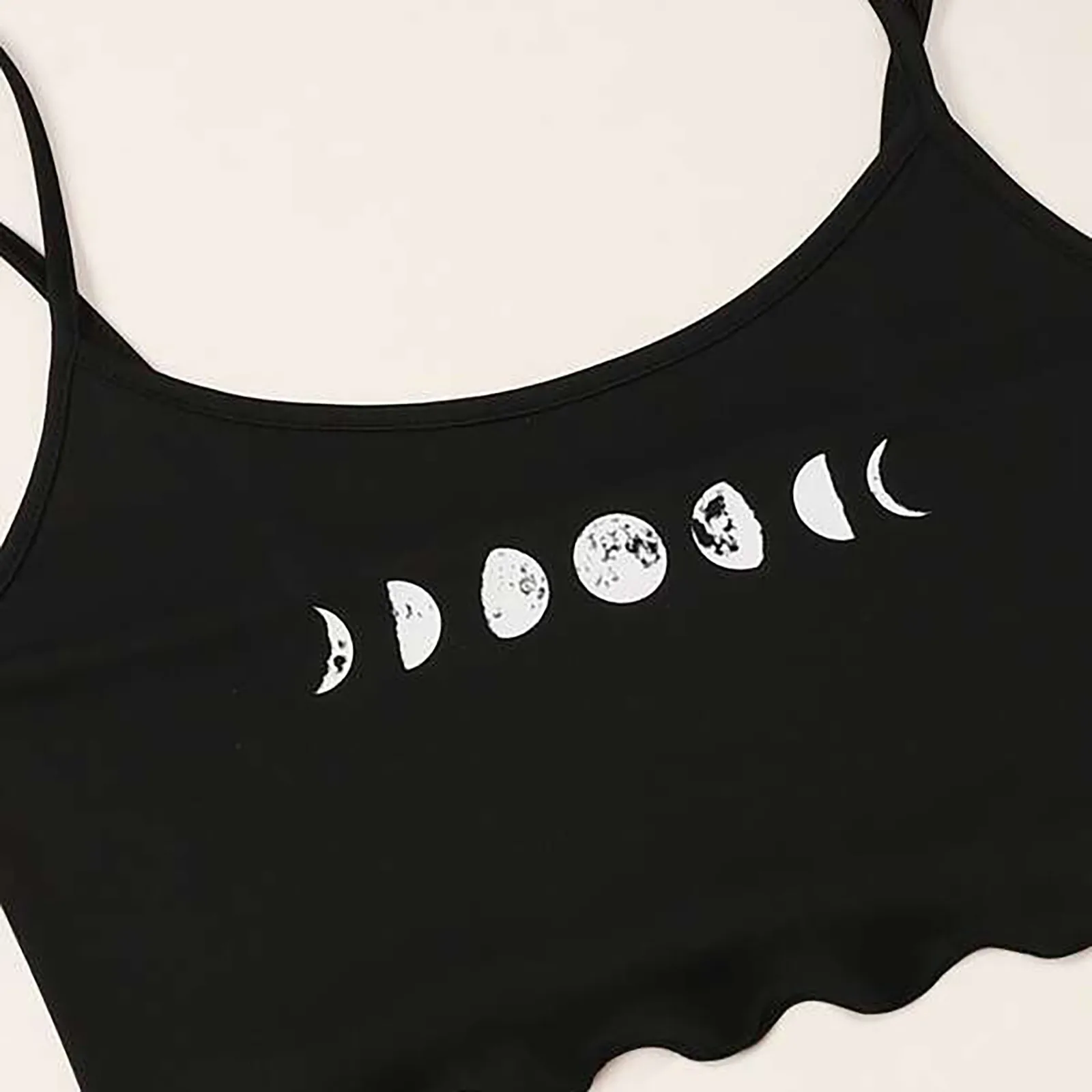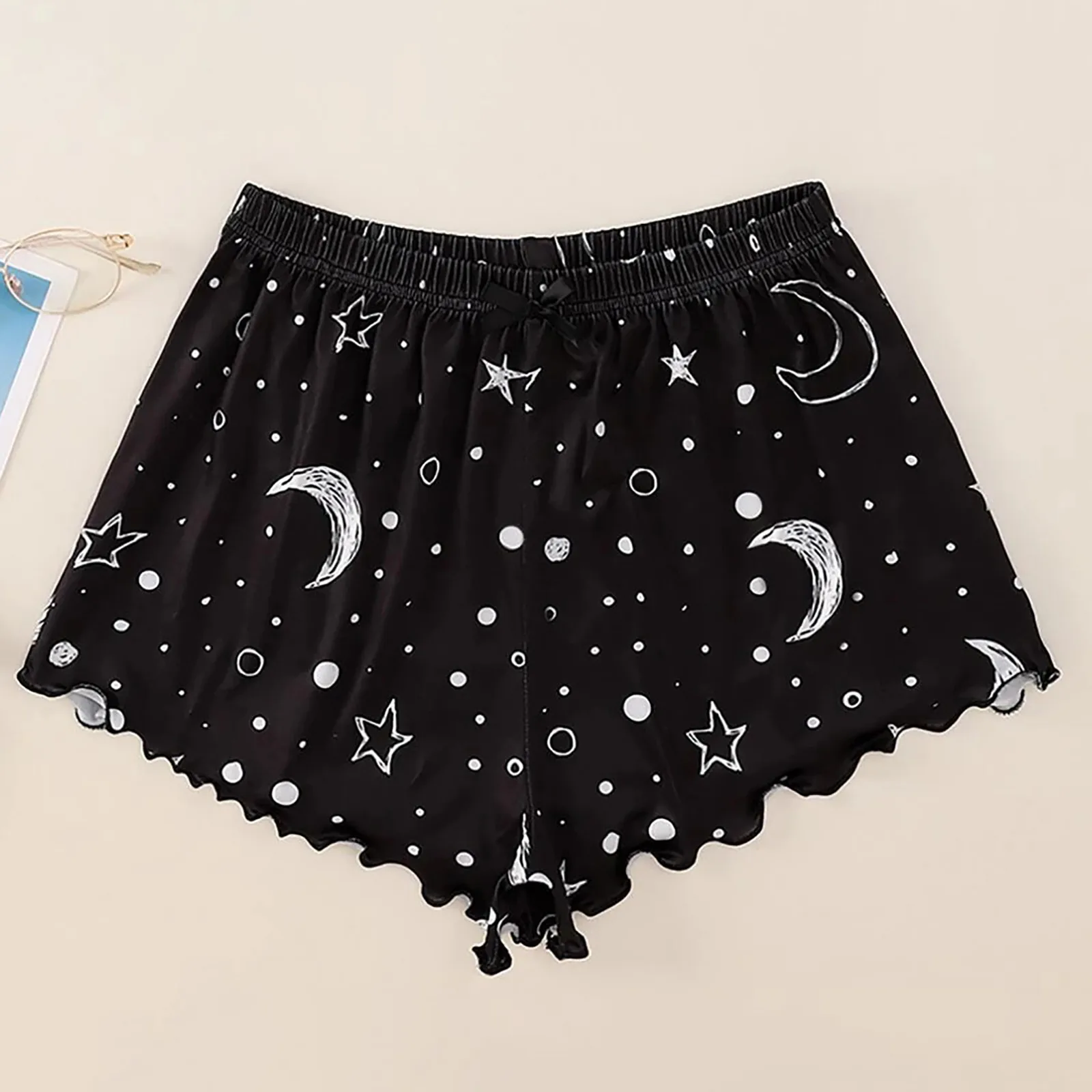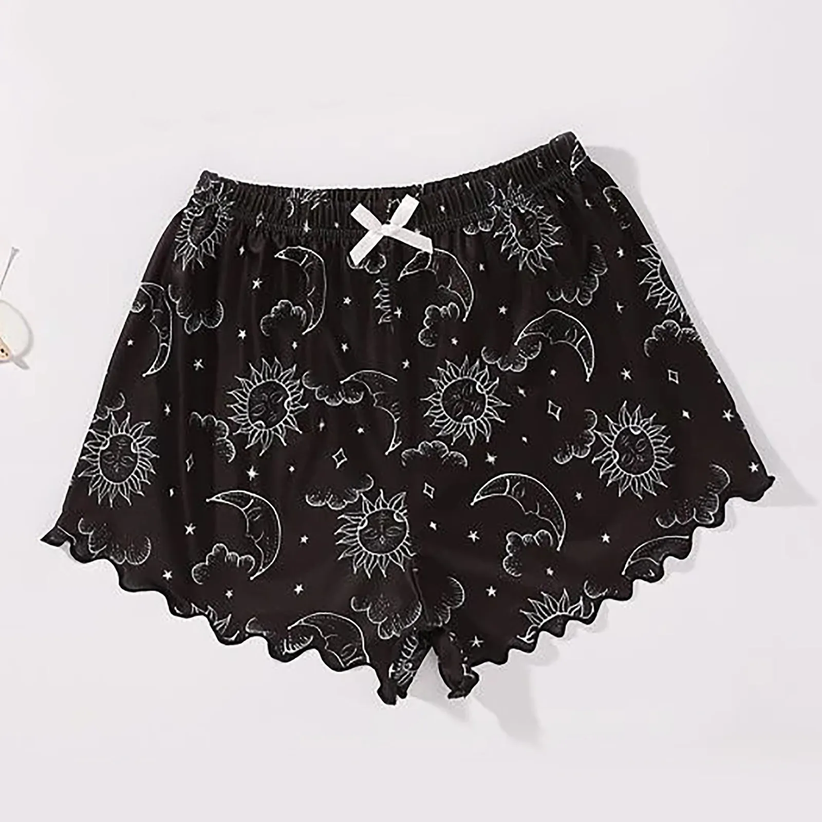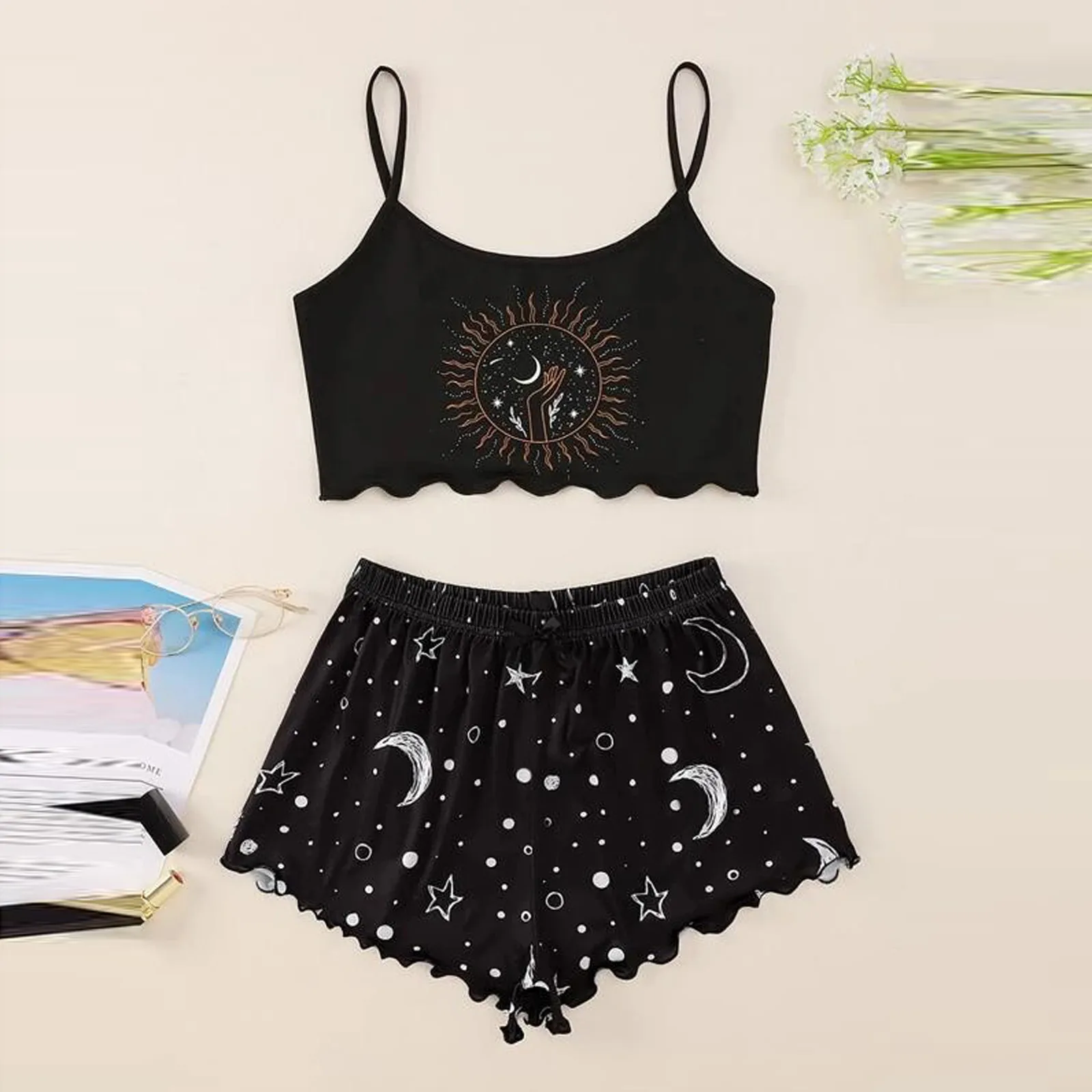 Пижамные комплекты с принтом звезд и луны, с бантом и квадратным воротником, черная одежда для сна для женщин, новинка 2021, модная ночная одежда, женская одежда