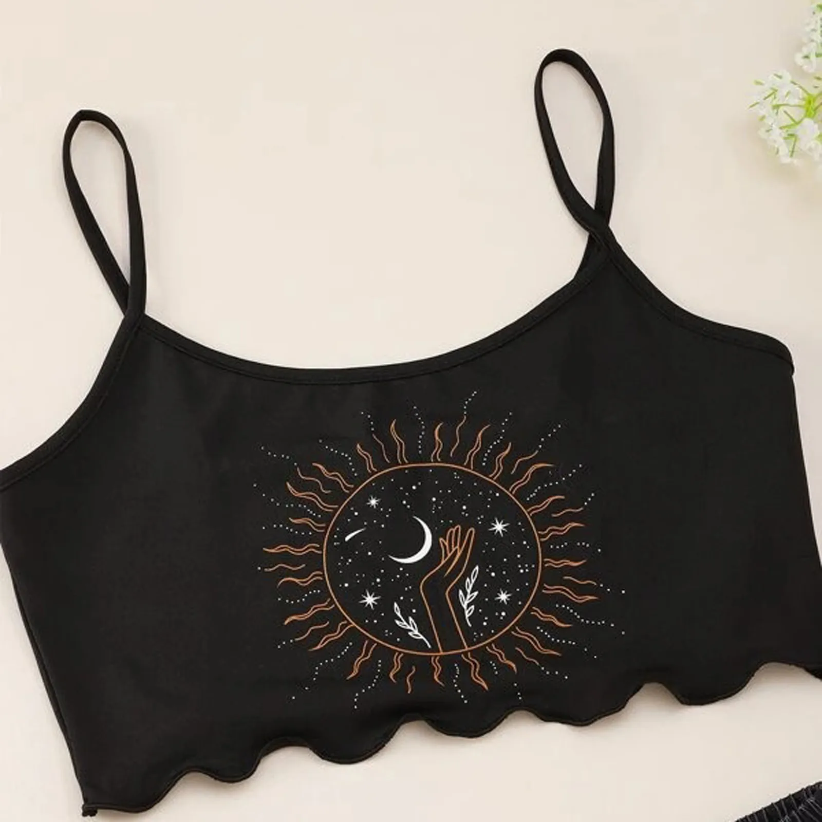 Женский комплект из 2-х предметов, укороченный топ и штаны с принто...