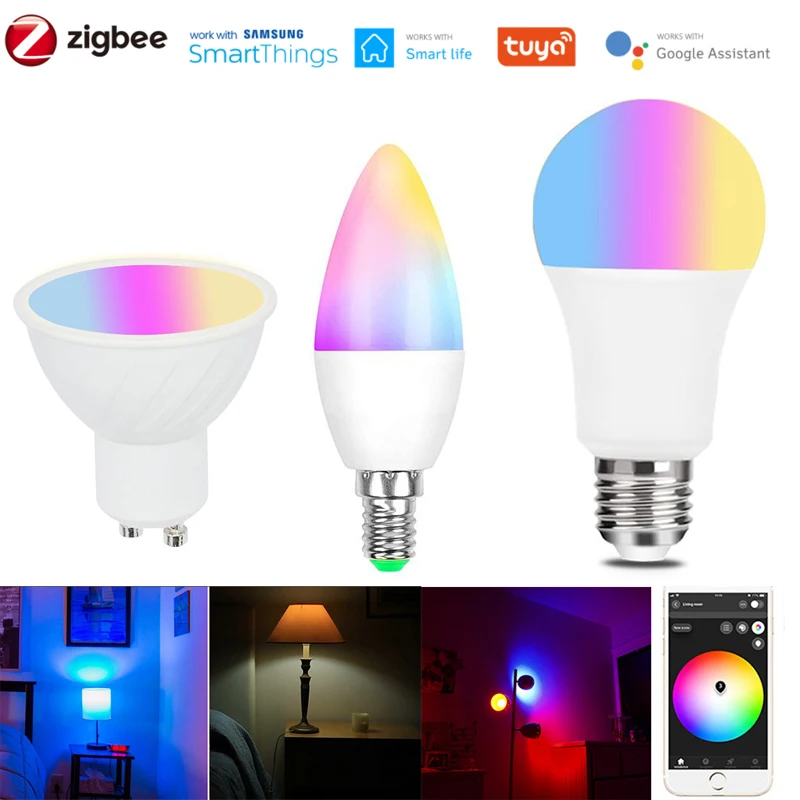Светодиодная лампа ZigBee 3,0, E27, E14, GU10, RGBCCT